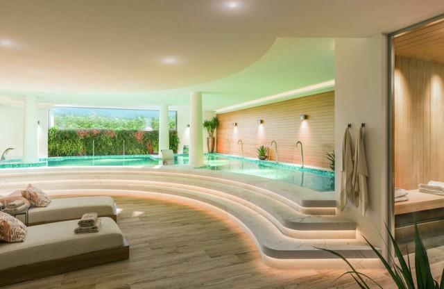 caractéristiques Air conditionné froid/chaud, Fenêtres en aluminium, Salle de gym commun, Style contemporain, parfait pour golfeurs, Fenêtres à double vitrage, Salle de bain suite, Cuisine meublée, salle de bain équippée, Piscine couverte et climatisée, Vue sur les montagnes, parking, Vue mer, en construction.