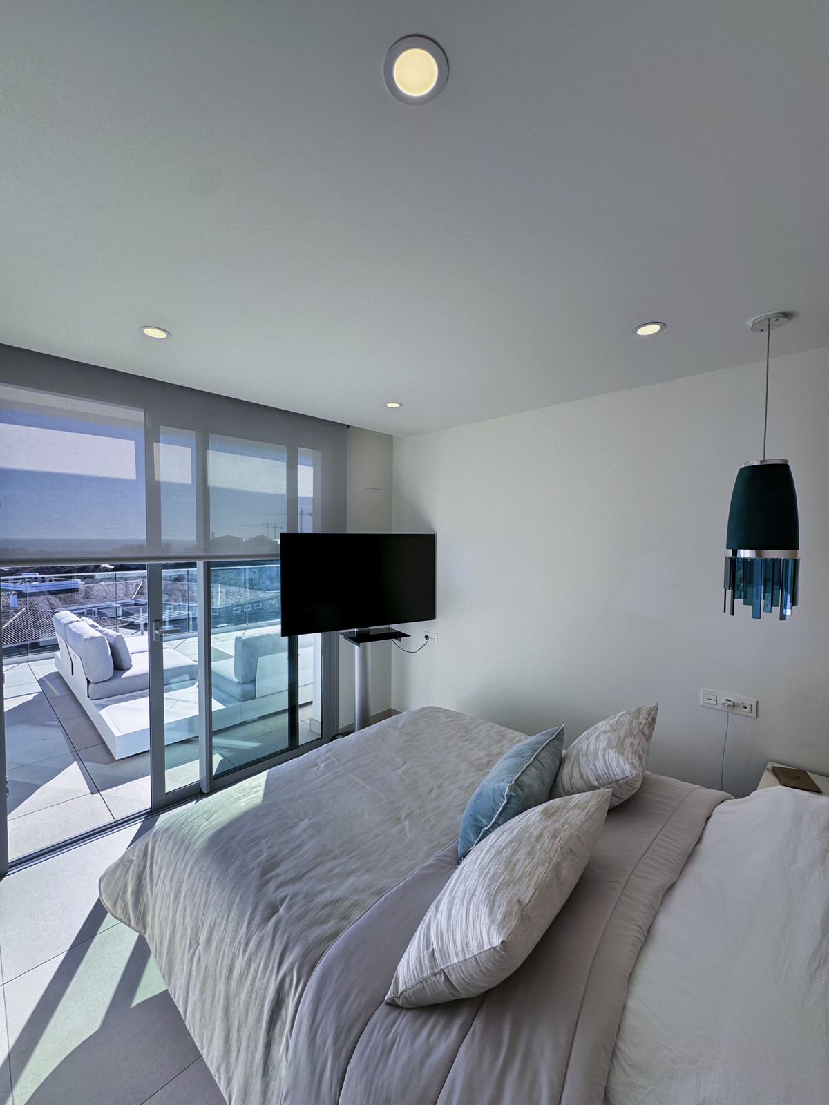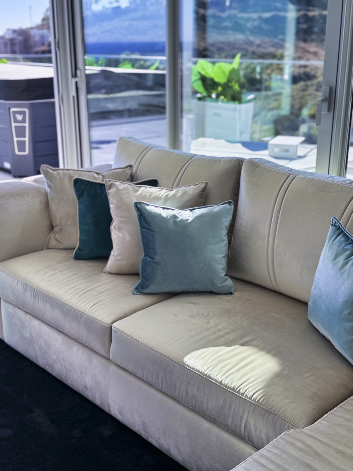 It has hot/cold air conditioning controlled by the best Air Zone home automation control system, underfloor heating throughout the interior area, LED lighting, designer kitchen with NEFF appliances, dressing areas in the bedrooms and large porcelain floors.