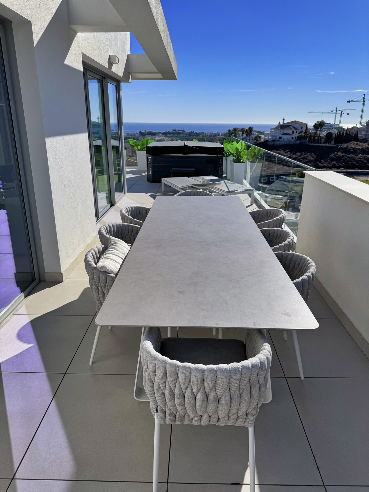 The penthouse with a 180m2 terrace and solarium with a lounge area, outdoor dining room from which to enjoy the best views.