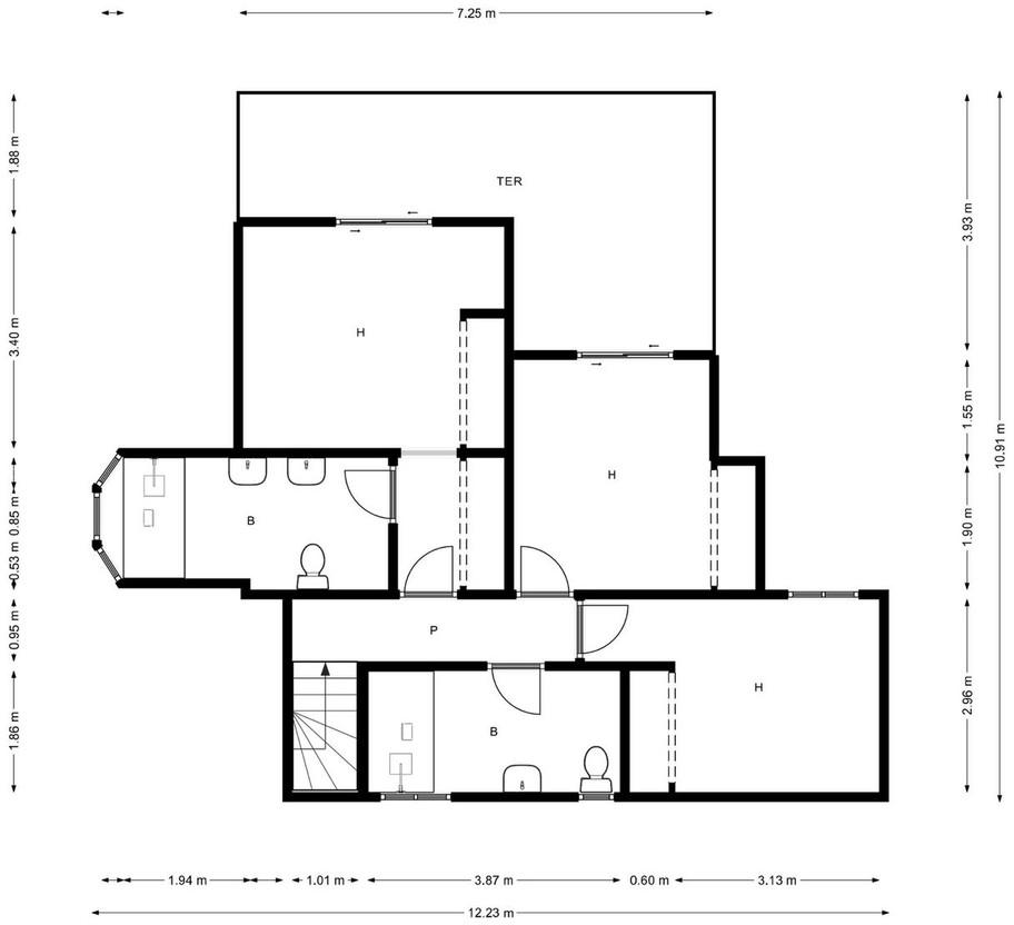 Stairs lead to the first floor which in turn leads to 3 spacious bedrooms, one being the master with ensuite bathroom. There is also a spacious family bathroom. A large terrace leads from both the master and second bedroom.