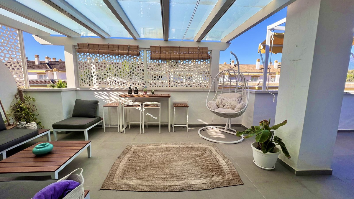 Great opportunity! Renovated and cozy PENTHOUSE in the Dama de Noche urbanization, just a few steps from Puerto Banús. Fantastic private urbanization with 24-hour security, paddle tennis court, large community gardens, 2 large swimming pool and restaurant. Excellent location, 5 or 10 minutes walk from Puerto Banús, the beach, surrounded by services and 10 minutes by car from Marbella Center.