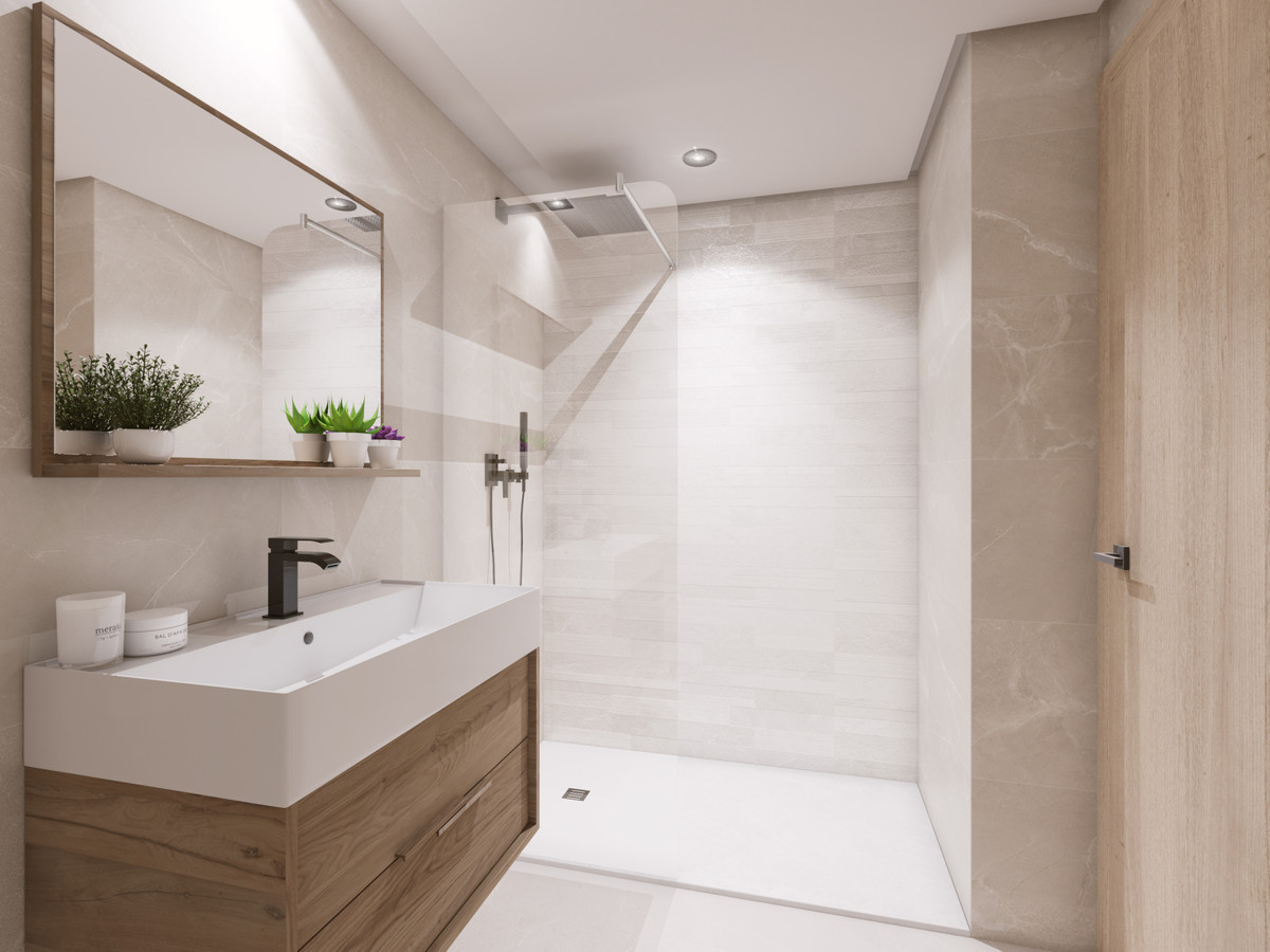 The project includes 4 blocks of 3 floors with homes in contemporary “open plan” style but with a rustic appearance that blends into the natural surroundings. Apartments with 2 and 3 bedrooms and penthouses with a solarium, with large terraces, communal pool and gardens with autochthonous plants.