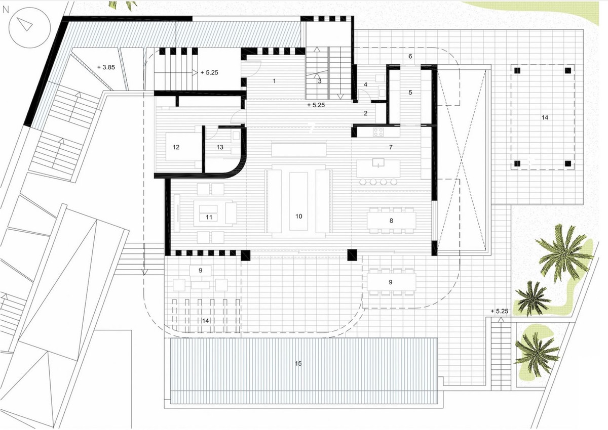 Basement: garage, installations room, storage room, distributor, waterfall machinery room, living room, billiard room, 1 bedroom with full size window and natural light, ensuite bathroom, cinema room, pool installations room and a Zen patio.