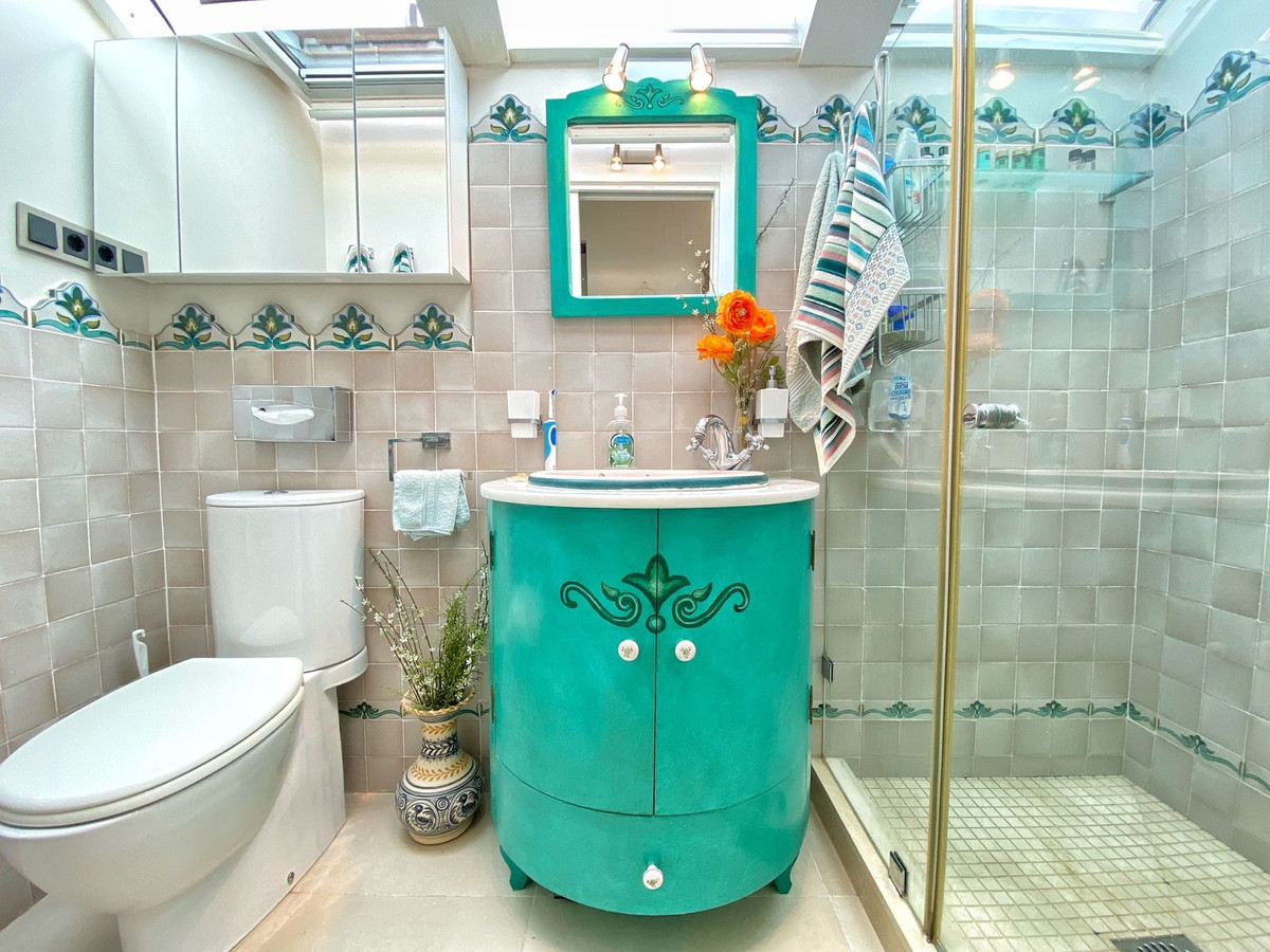 On the upper floor, there is also a second small kitchen, located next to a sunny, 35 m2 covered outdoor terrace with a Jacuzzi and views of the Old Town.