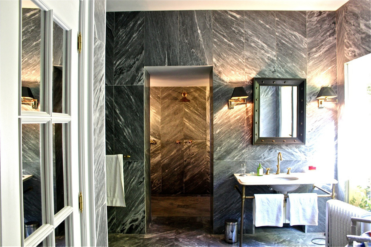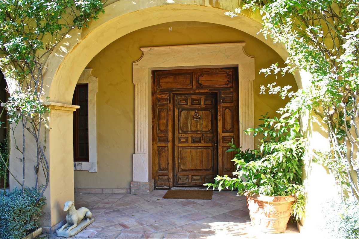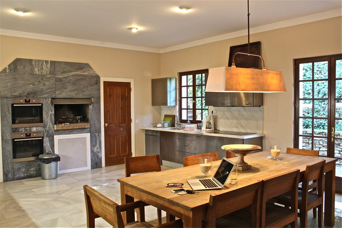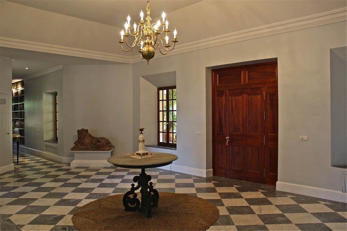 One of the most imposing and spectacular houses in Spain, it is set in a totally private valley surrounded by hillsides and rich forest on a rural property of 260,000m2. This palatial style property is located 14 kilometres north of Ronda, Hemingway's favourite town in Spain, with its famous bridge and bullring, the oldest in the country. The villa is designed and built to the exacting specifications of its owners 10 years ago, and is a reflection of their good taste. Almost 800m2 built. You enter through a typical Andalusian courtyard with large vegetation and a sense of serenity, a fish pond in the centre and different living areas. A hallway runs the length of the central wing of the house, at the end of the hallway is the fully fitted kitchen with top quality appliances, stainless steel cupboards and marble surfaces with direct access to the front patio and gardens with barbecue area, laundry room and utility room. On the opposite side is the dining room of enormous elegance with an 18th century mahogany dining table with French windows overlooking the well maintained lawn and surrounded by a pretty flower bed, a beautiful pergola and barbecue area for alfresco dining. The next room along the hallway is the "little" sitting room, a very relaxing room, with double doors opening onto the outside terrace. The spacious main living room with marble floors comes next with a huge fireplace and a hand-woven Indian carpet which was specially commissioned in Jaipur and took eight months to make. Next is a study or office, at the other end of the hallway is the very elegant and beautifully furnished master suite, with its own sitting room and wonderful views from the French windows that face two sides of the room. Impressive as it is, even more so is its enormous bathroom with bathtub, white marble washbasin and shower. The other four bedrooms are located in this wing of the house, one of them accessed from the hallway, the other three from the front courtyard. All are individually decorated and furnished, but all share the same impeccable quality and size as the other rooms in the house. All have large and attractive en-suite bathrooms. Majestic staircases descend to the terrace immediately below which has been laid out as another area of the formal garden, where fish ponds and tranquil sitting areas are enjoyed. A large part of the hillside of the estate has been cultivated with 1 hectare of vineyards producing really good quality "Reserva" grapes and over two hectares of olive trees. On one of the hillsides above the house, the owners have created a small Mediterranean garden amongst the trees, just another delightful place to discover as you explore this wonderful estate.