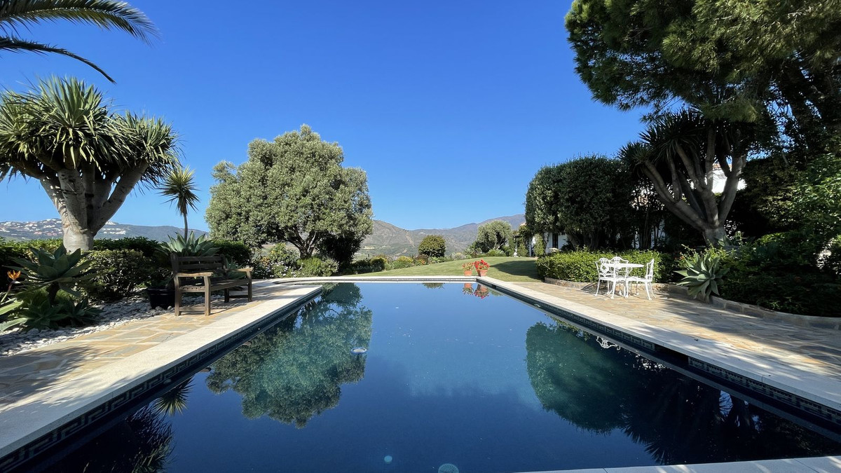 Immerse yourself in the captivating charm of this refined utterly peaceful country home, affording absolute privacy and breathtaking panoramic views, which unfold before you as far as the sea and the Sierra de Ronda. The beach, several golf courses, riding stables and extensive shopping facilities are only a 10-minute drive away. Embrace the timeless elegance of this Cortijo style country house, evident in the spacious rooms bathed in natural light and filled with a sense of effortless sophistication.