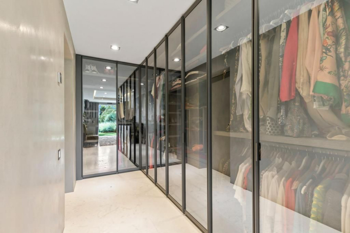 The villa features expansive open-plan interiors filled with natural light, a designer kitchen with Gaggenau appliances, and seamless indoor-outdoor flow through floor-to-ceiling glass doors. Multiple terraces overlook landscaped gardens, a large swimming pool, and private chill-out areas. With guest apartments, a gym, office, and smart home technology, the property offers every convenience for luxury living.
