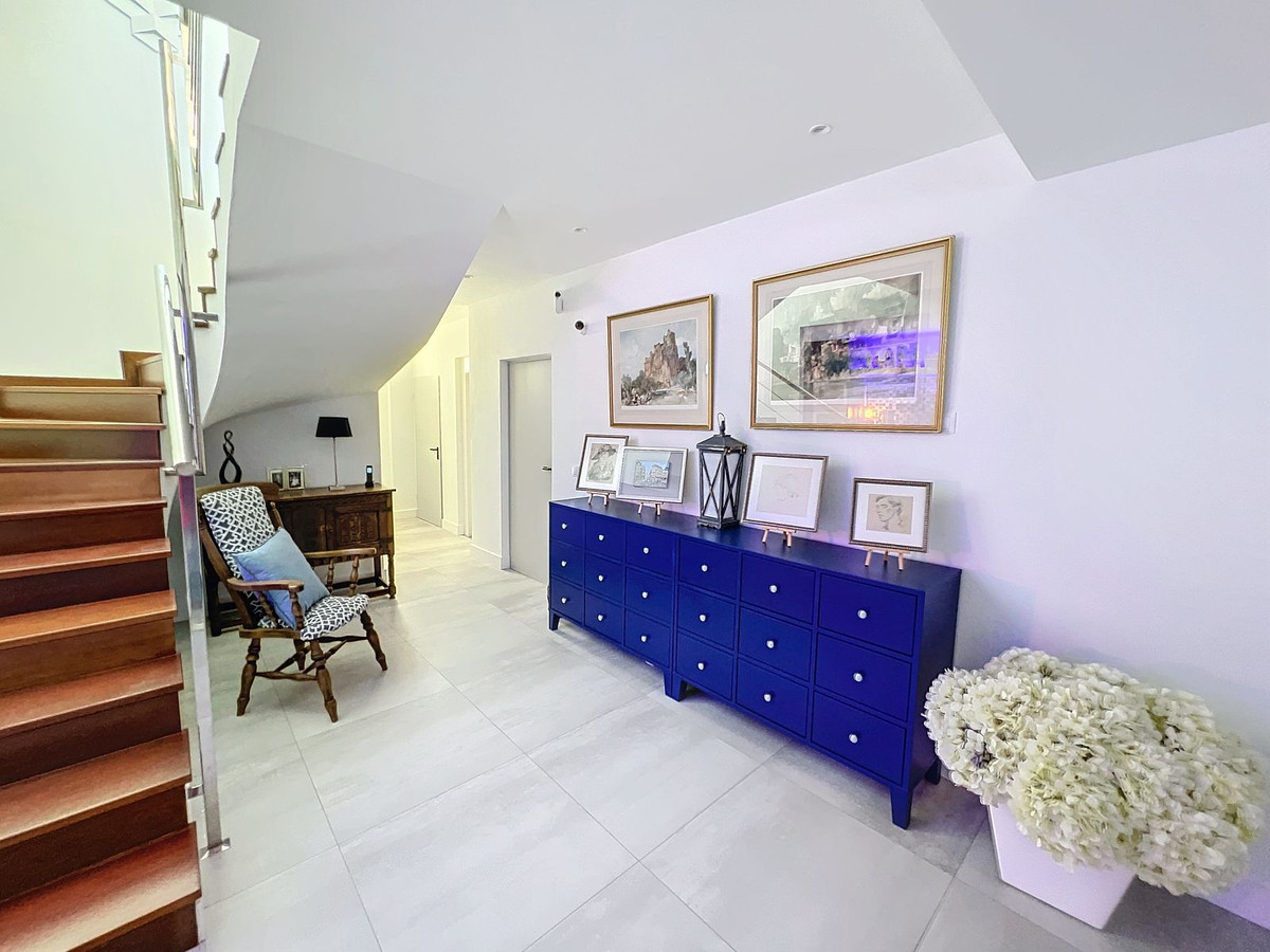 Outside, the beautifully landscaped gardens provide a peaceful escape, while the communal pool and well-equipped gym offer fantastic opportunities for leisure and fitness. A dedicated BBQ area ensures you can enjoy the outdoors year-round, and with multiple terraces, private parking, and direct beach access, this villa provides the perfect blend of convenience and luxury living. The villa also boasts an elevator for easy access to all three levels, adding to the comfort and accessibility. For those looking for a fully furnished home, the villa is available in option with a range of high-end furniture and appliances, including 5 fridges, 3 dishwashers, 2 washing machines, 2 tumble dryers, and 3 TVs – for the price of €100K. With easy access to the beach and all nearby amenities, this villa offers an unparalleled living experience in one of the most sought-after locations on the Costa del Sol.