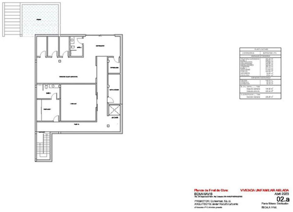 The entrance level welcomes you with a spacious living room adorned with a stunning fireplace, complemented by book-matched marble. The open-plan layout seamlessly connects to the Gaggenau-equipped kitchen. Both areas have access to the terrace through pocket Schuco doors, providing panoramic views of the Mediterranean Sea, Gibraltar, and the Moroccan coastline on clear days. Additionally, this level features a small swimming pool separate from the main pool and garden.