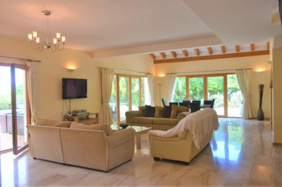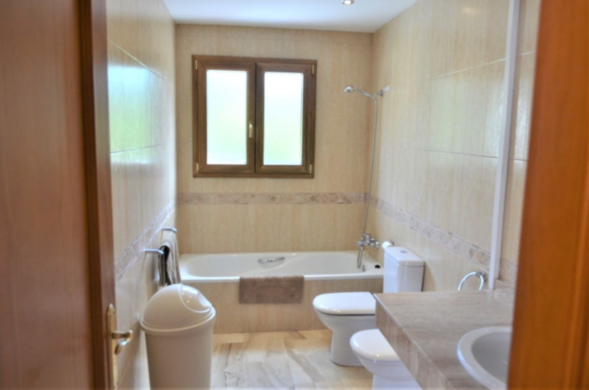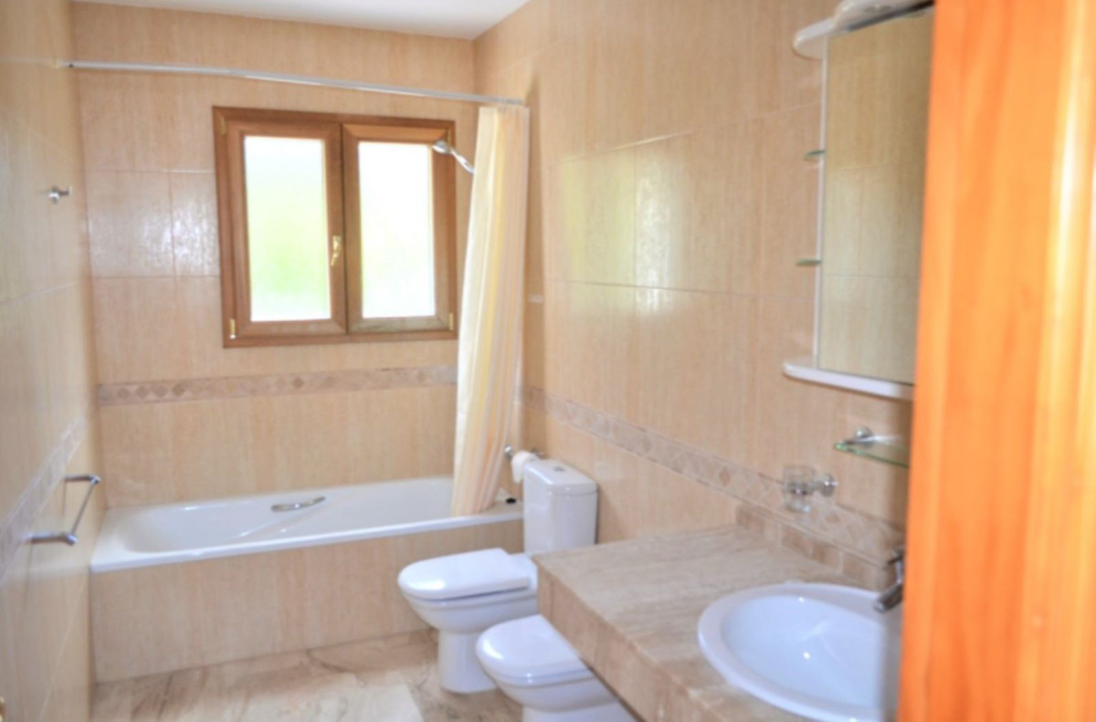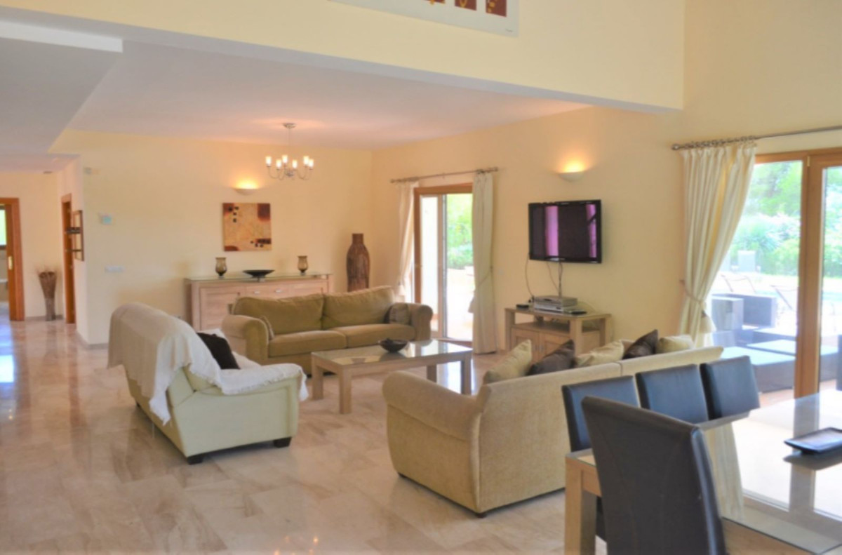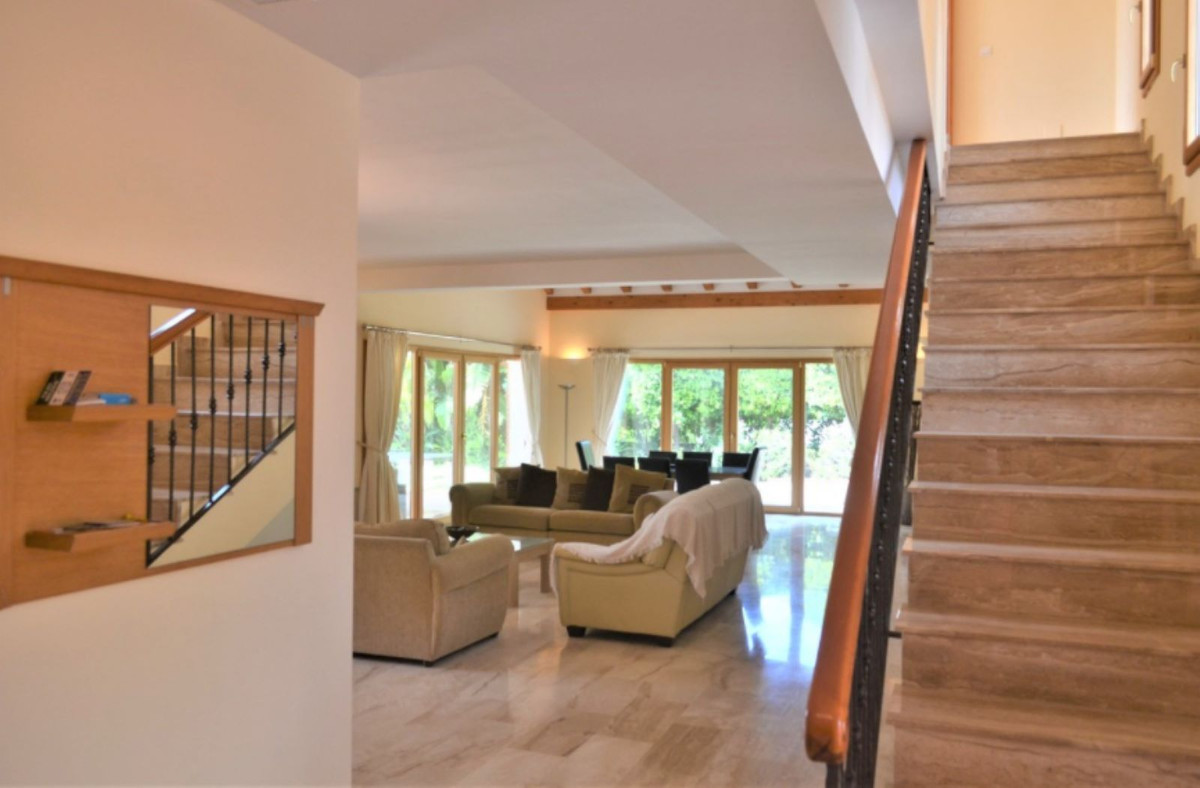 The villa is built across 463m2 with a plot of 2197m2. As you enter the front door, on the east wing there are 3 double bedrooms and 2 bathrooms, a separate kitchen and very sunny large lounge. The west wing has another double bedroom, bathroom and additional area for a second lounge or office. On the first floor there is a large master bedroom, dressing area and large en suite leading out to a very secluded separate terrace. The gardens are well maintained with many fruit trees, excellent sized pool and parking up to 10 cars, with the addition of a double garage. The property is all on the flat and has disable access. The kitchen needs renovating. And the property comes unfurnished. The owner is open to offers.