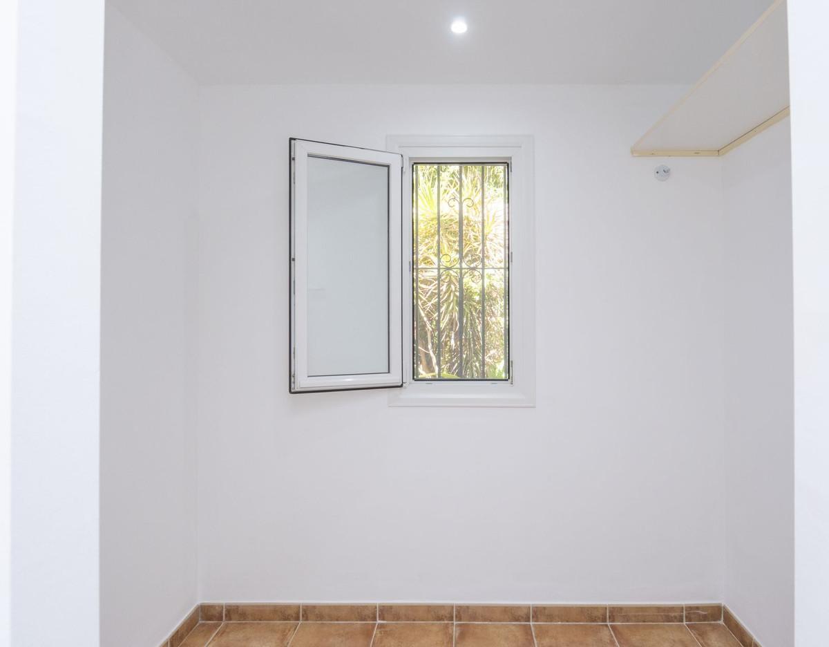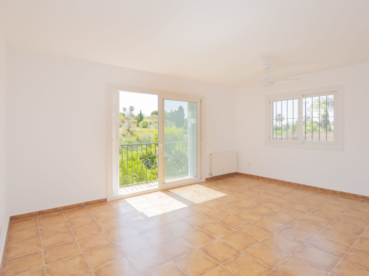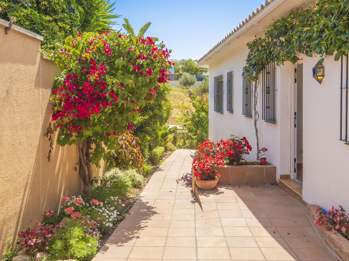 Care for Tranquility, Nature but still at 5 minute Marbella downtown? This is an independent Villa located at the outskirts of Marbella, surrounded by nature, within a small community of proprietors, and comprises five bedrooms and four bathrooms distributed along two storeys. On the ground level, the kitchen plus four rooms to be allocated at will, and a cute terrace with BBQ area. On the upper floor, an ample bedroom with dressing room and bathroom plus another terrace adding up to 15sqm. This property plot surrounds the house, with a number of fruit trees and an orchard area which could be converted in the pool area, besides, there is a wide storage room currently hosting tools. The dwelling shares a border with another property, the alley leading to the house and a small creek East of the property. An interesting choice for a quiet property for those who love Nature, environment and yet near golf and Marbella beaches.