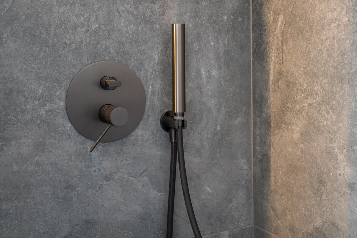 Inside, the open-plan living and dining area exudes contemporary warmth with abundant natural light, sleek finishes, and designer ceiling lighting throughout. The kitchen, crafted in a rich walnut tone with handleless cabinetry, is fully equipped with premium appliances—perfect for modern living and entertaining. The penthouse features three spacious bedrooms and three luxurious bathrooms. Two elegant master suites on the upper floor boast ensuite bathrooms, bespoke wardrobes, and stunning views from floor-to-ceiling windows, creating an atmosphere of peace and sophistication.