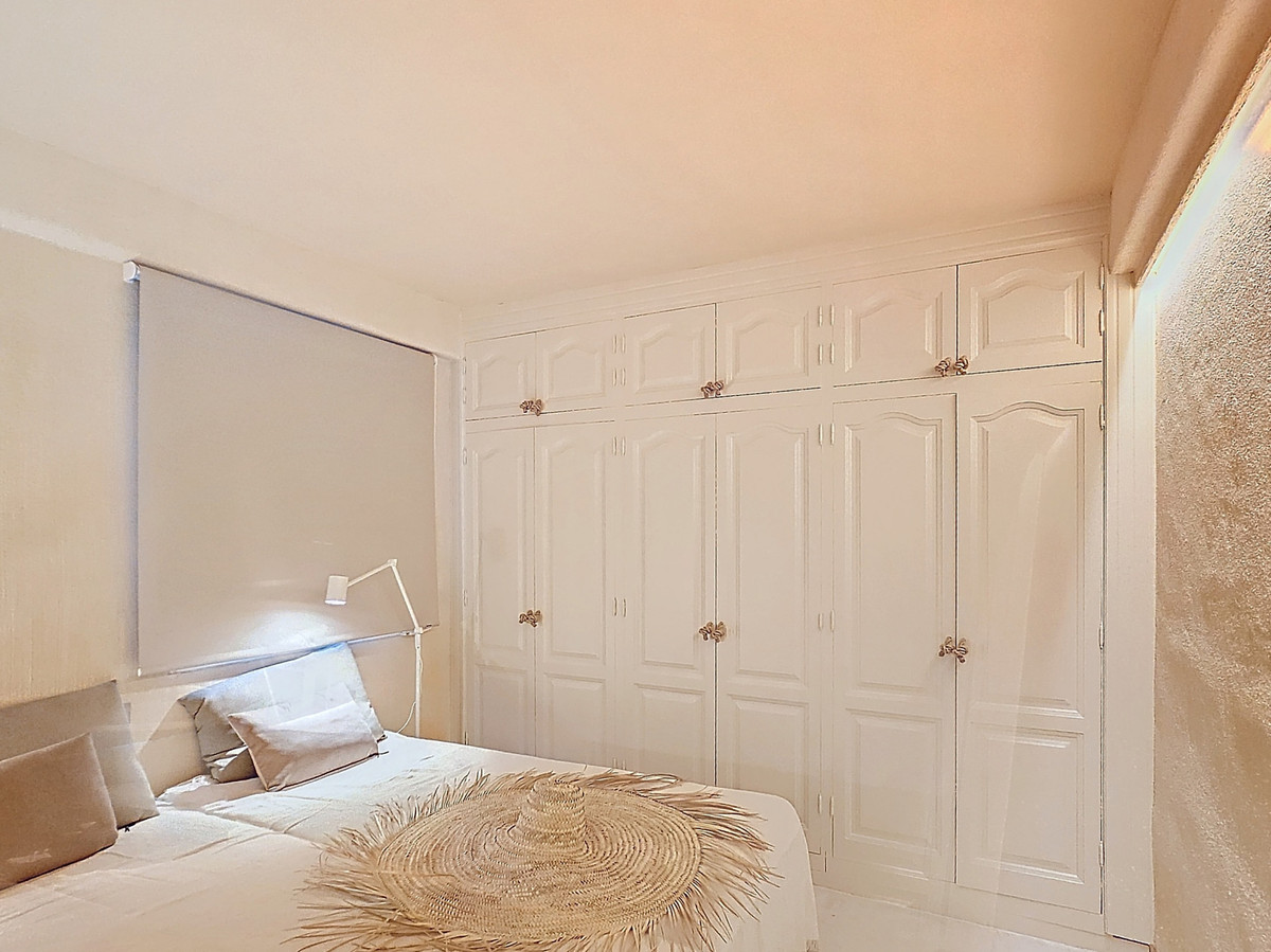 Fully refurbished in a Boho rustic style, and in a frontline beach building in the historic Old Town of Estepona is where you will find this 2 bedroom,1 bathroom apartment with an open plan kitchen, perfect as a holiday apartment and rental opportunity, as it already has a Tourist License. The location is unbeatable, you have all you want from the Old Town just steps away, and the Rada Beach almost immediately as you step out the main entrance of the building. Situated on the first floor with lateral sea views from the 2 private covered terraces that face to the plaza square where you have several restaurants, and ice cream shop just below, as well as beach Chiringuito steps away. It has central air conditioning, and built in wardrobes. With easy access from the main highway and entrance of Estepona, and underground public parking just below the building, with all shops and restaurants at hand, and just a 15min stroll along the new pedestrian beachfront promenade to the lovely port of Estepona. Wonderful opportunity to purchase your holiday apartment!