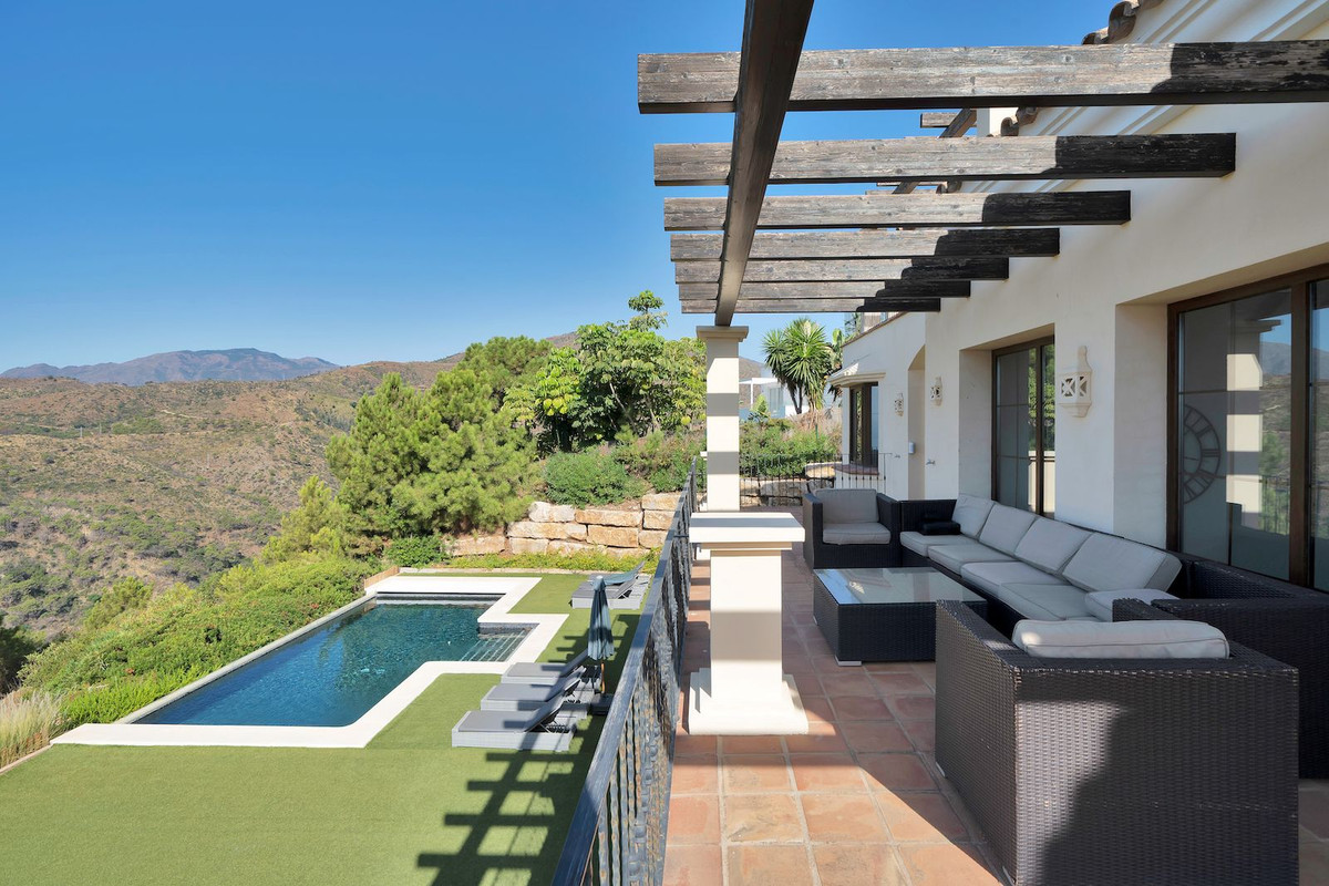 This modern classic 5-bedroom detached villa located in the exclusive Monte Mayor area of Benahavis, Spain and offers a blend of elegance, comfort, and breathtaking views.