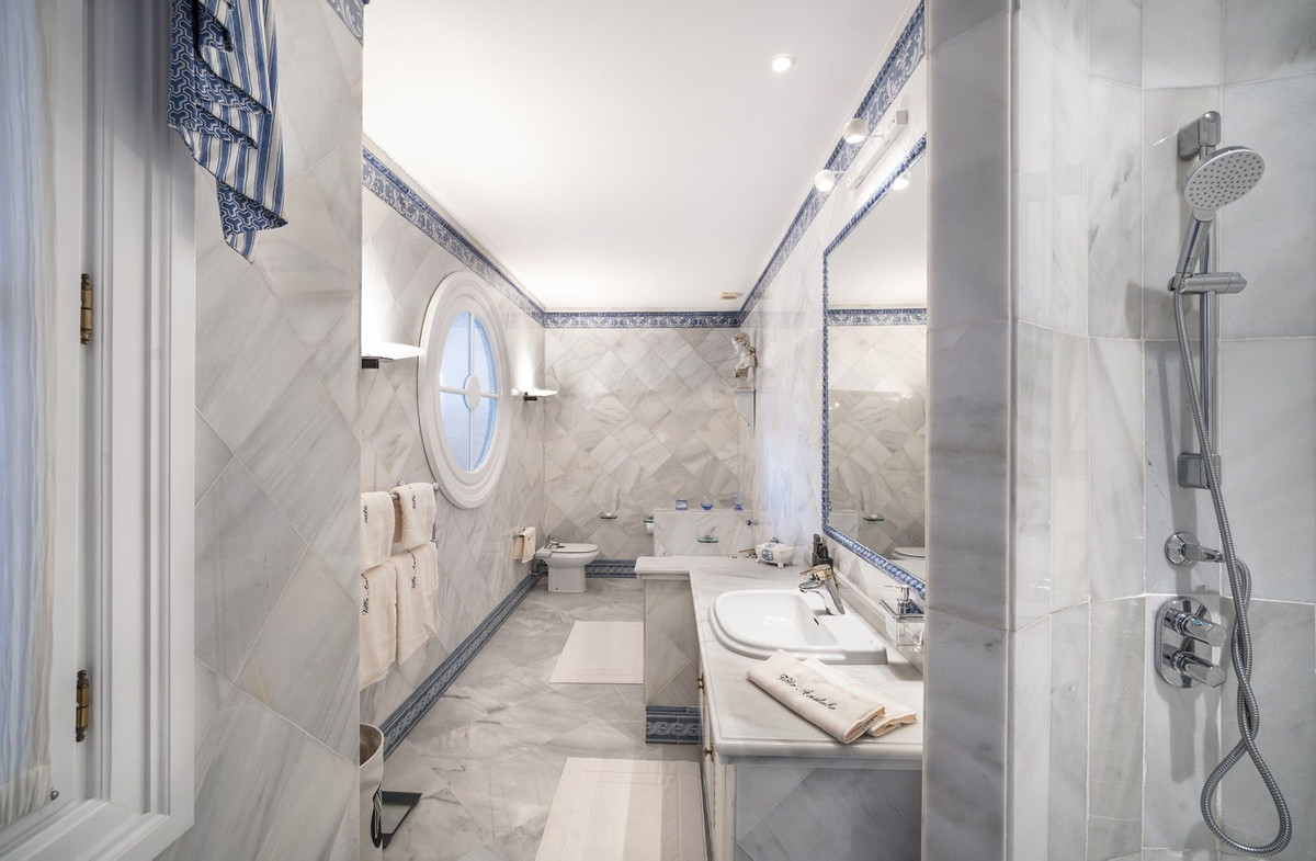 Upstairs, the first floor features three en-suite bedrooms, each approximately 40m², with their own bathrooms, wardrobes, balcony and stunning sea views. There is also a gallery with a lovely terrace to enjoy the sun and the views.