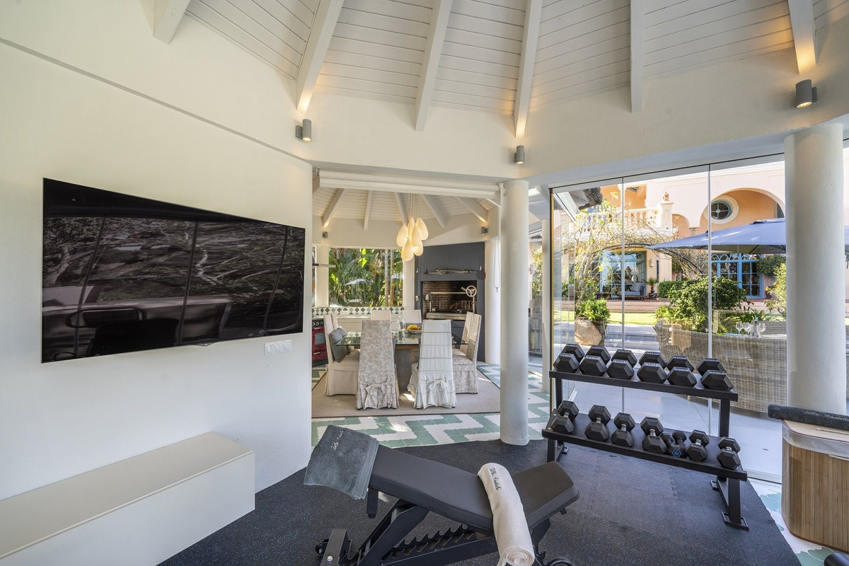 Relax in the beautiful garden and cool off in the impressive 20-metre pool, which can also be heated, along with its separate outdoor jacuzzi. In addition to the main villa, there are two independent bungalows: one with a fully equipped kitchen, dining area and barbecue area, and the other with a gym.