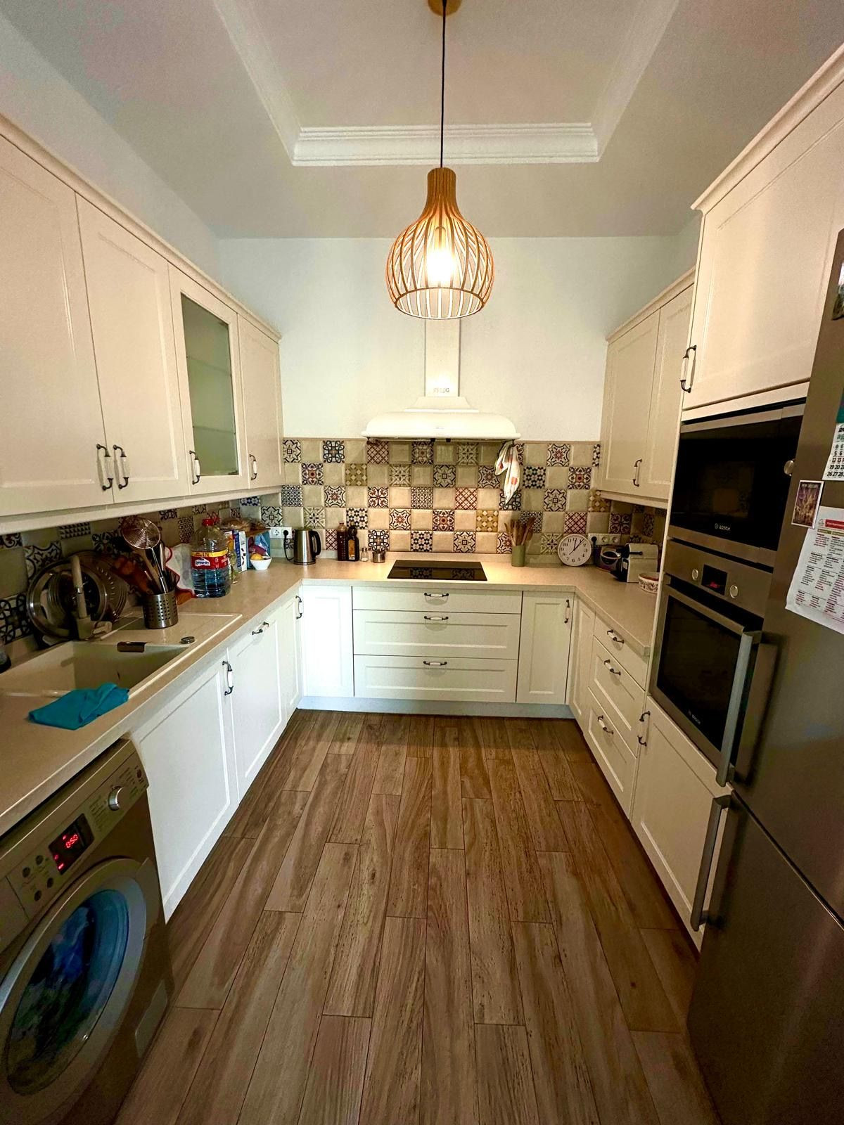 On the first floor, there are three bedrooms, two of them with a terrace, and two full bathrooms. The master bedroom is en suite and all rooms have fitted wardrobes. In addition, the 65m² attic includes a wooden house used as an additional bedroom with its own air conditioning.