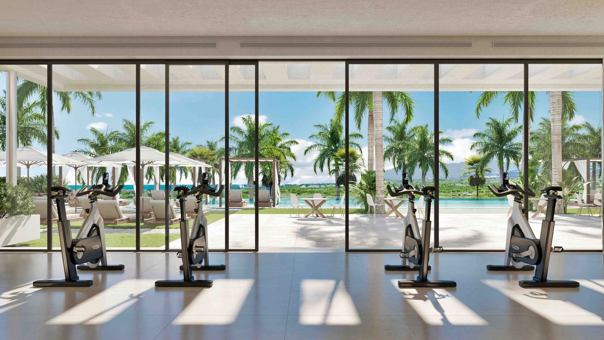 Within the upscale private resort, you can enjoy attractive communal facilities for your relaxation and fitness. These include extensive, Mediterranean gardens with 4 large outdoor pools, sun loungers and chill-out beds, an outdoor lounge bar area, a spa with sauna, steam bath, indoor swimming pool and fitness studio, as well as a coffee shop and co-working lounge.