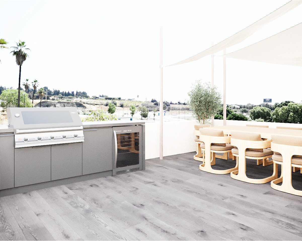 All apartments are equipped with underfloor heating, Schneider light switches, intelligent locks and air conditioning, as well as water-saving bathroom and kitchen fittings. Fully fitted and equipped kitchens. German Villeroy & Boch bathroom taps. Sliding doors unite the terraces and living areas as one, harmonising indoor-outdoor living. Some units are designed with movable walls to adapt to evolving families. Wooden Mallorcan blinds provide shade and allow air to circulate.