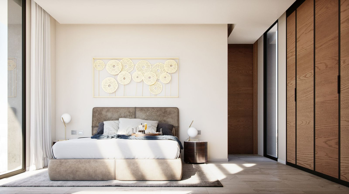 Main floor: Bright and spacious living-dining area with large windows that flood the space with natural light. The open-plan modern kitchen is fully integrated, perfect for entertaining and everyday living. Direct access to a large terrace with outdoor lounge and dining area, ideal for enjoying the Mediterranean climate all year round.