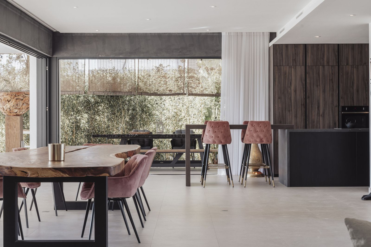 The heart of this stunning home is undoubtedly its open-plan living area, which seamlessly integrates the living, dining, and kitchen spaces into one cohesive and inviting environment. This area opens out onto large terraces, offering breathtaking views and creating an ideal setting for alfresco dining or simply enjoying the beautiful surroundings.