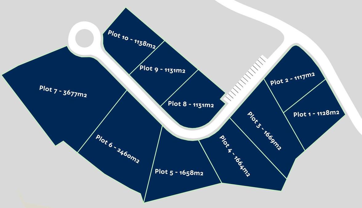 The entire lot covers 13,000 m², allowing for one villa per plot. Additionally, 4 plots already have building permits submitted with a basic project. (See plot numbers on the plan)