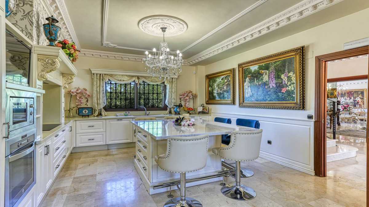 Discover this one-of-a-kind luxurious country estate —a perfect blend of modern elegance and rustic charm, situated just 20 minutes from Málaga Airport and near the lively town of Alhaurín de la Torre. The commanding mansion is beautifully encased in local stone, carefully reclaimed and restored, which imbues the property with unique character and charm. Standout features include the main hall’s stately stone fireplace and a hand-carved coat of arms, all framed by impressive outer columns imported from India.