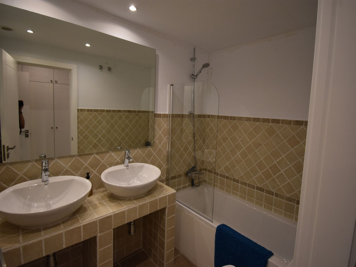 The complex has a lovely communal swimming pool with sun loungers, and there is underground private parking with a lift that takes you straight to the apartment.