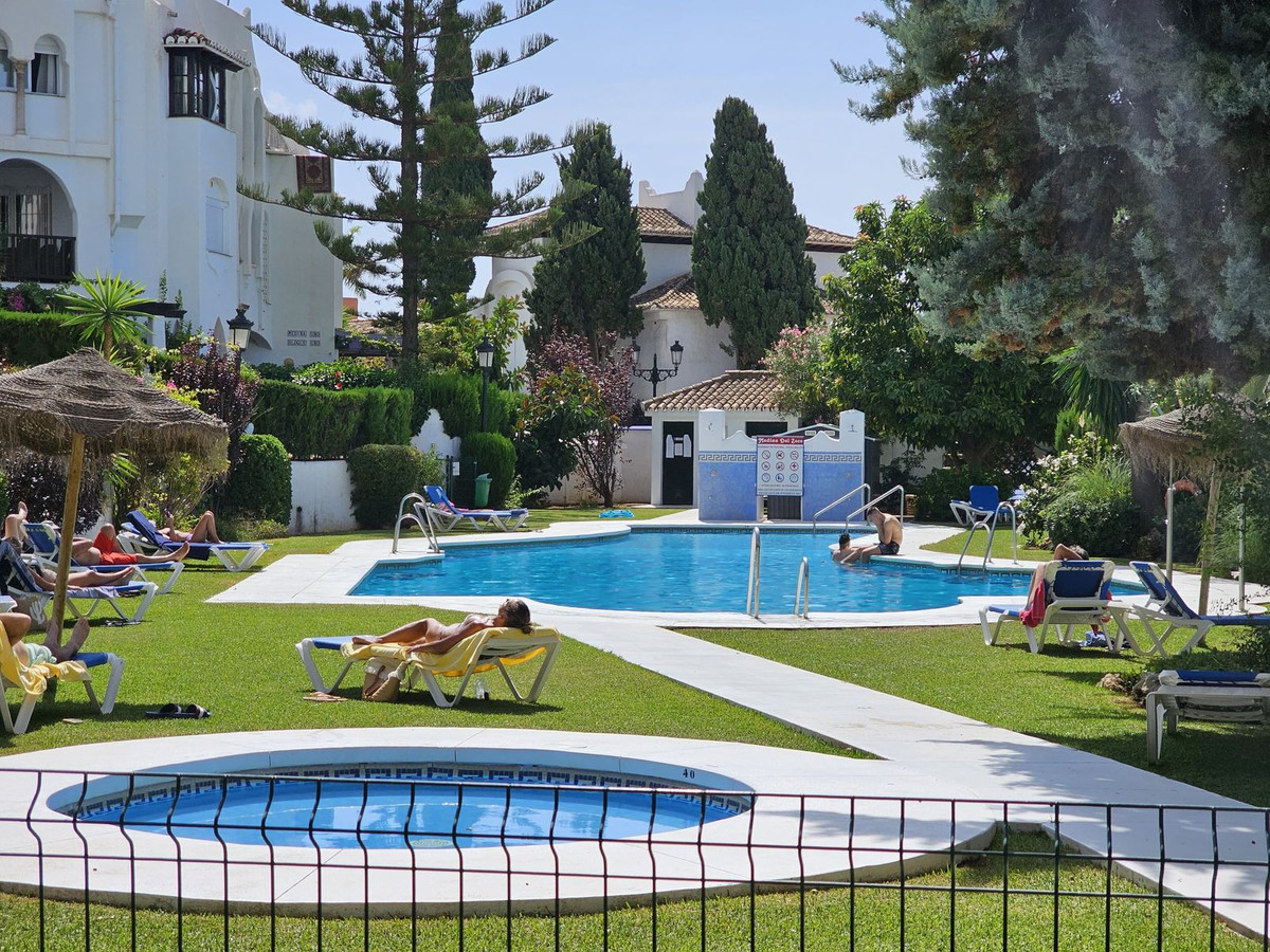 A Really great corner ground floor apartment with a large private garden just minutes from the beach, shops and all amenities in Calahonda.
