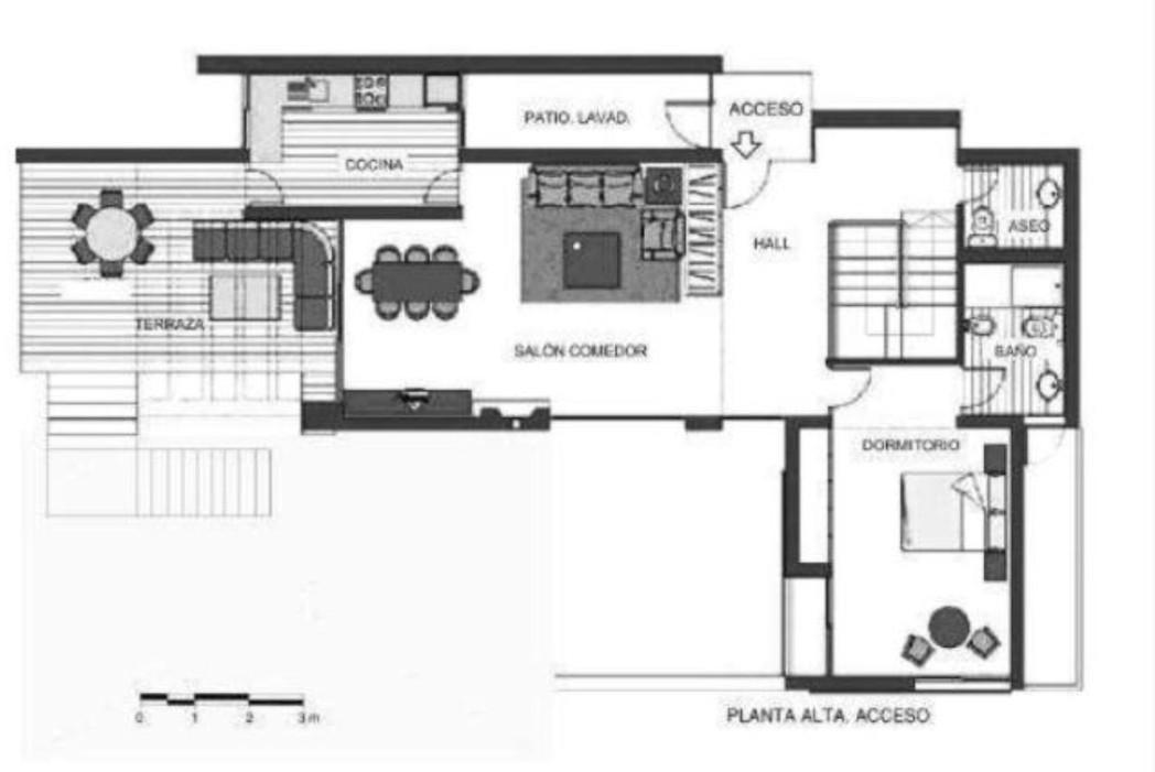 Modern Amenities: A large, open-plan lounge and dining area lead to a fully equipped modern kitchen with a separate pantry/washroom. The main terrace boasts a second lounge area, dining table, and barbecue for Al Fresco Dining.