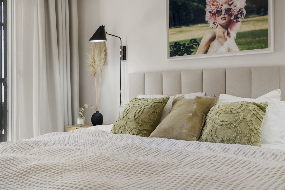 On the lower floor, there are three additional bedrooms, both with direct access to a landscaped garden with a terrace, perfect for soaking up the sun and enjoying the green surroundings.