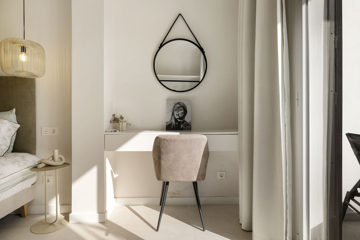 The home is spread over two levels. On the upper floor, you’ll find two bedrooms, offering plenty of space for your family, guests, or even a home office. The living and dining areas have access to a spacious terrace facing south-southwest, featuring a barbecue and a relaxing lounge area, ideal for enjoying the outdoors.