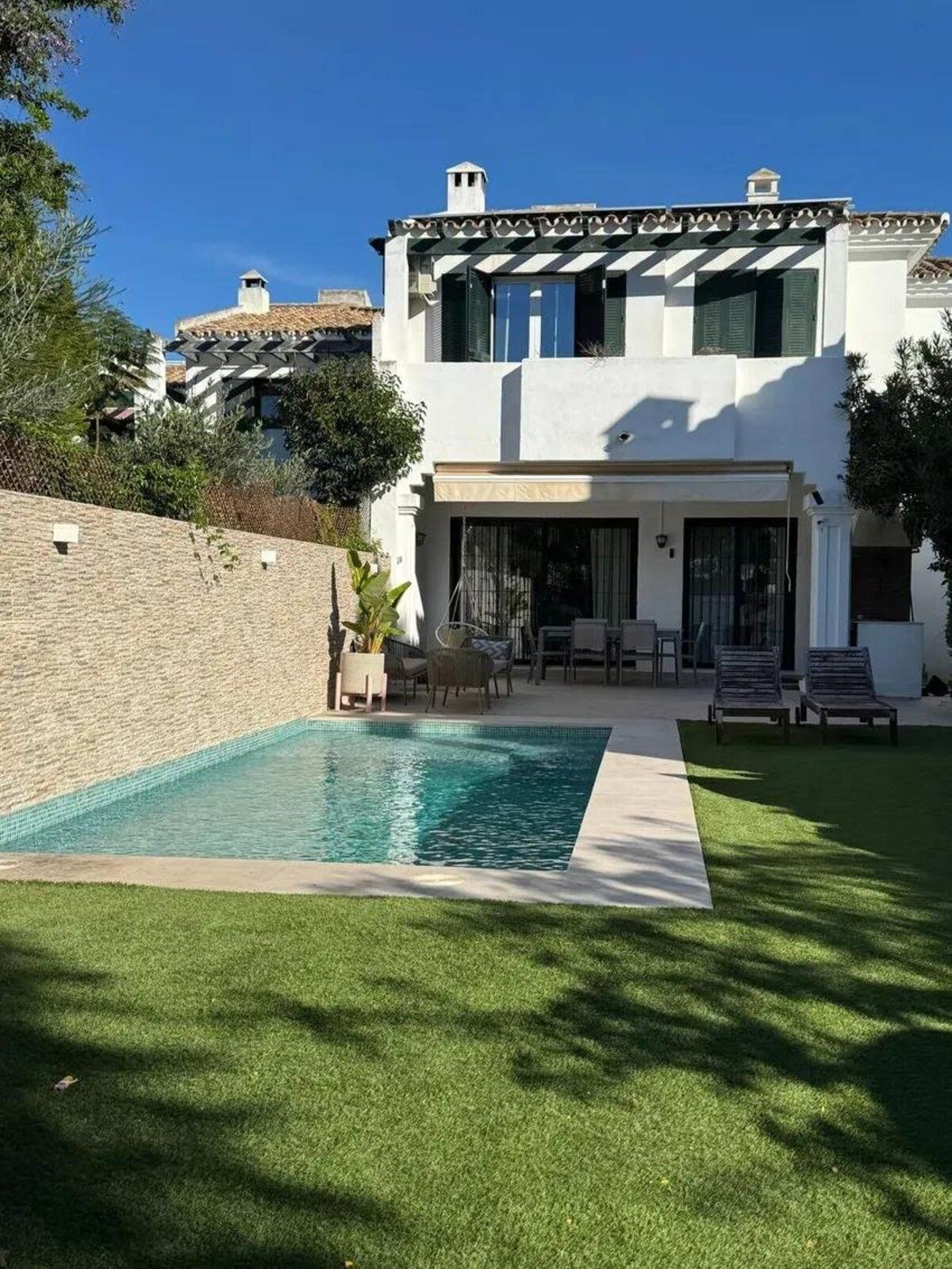 This spectacular semi-detached villa, located in the sought after area of San Pedro Playa in Marbella, has been recently renovated to offer a modern home full of amenities. Just steps from the beach, this property combines an excellent location with luxury features ideal for enjoying life by the sea. It has 3 bedrooms and 3 bathrooms, offering spacious and comfortable rooms perfect for family or guests, plus a large and bright living room that becomes an ideal space for relaxation and gatherings, bathed in natural light thanks to its open design.