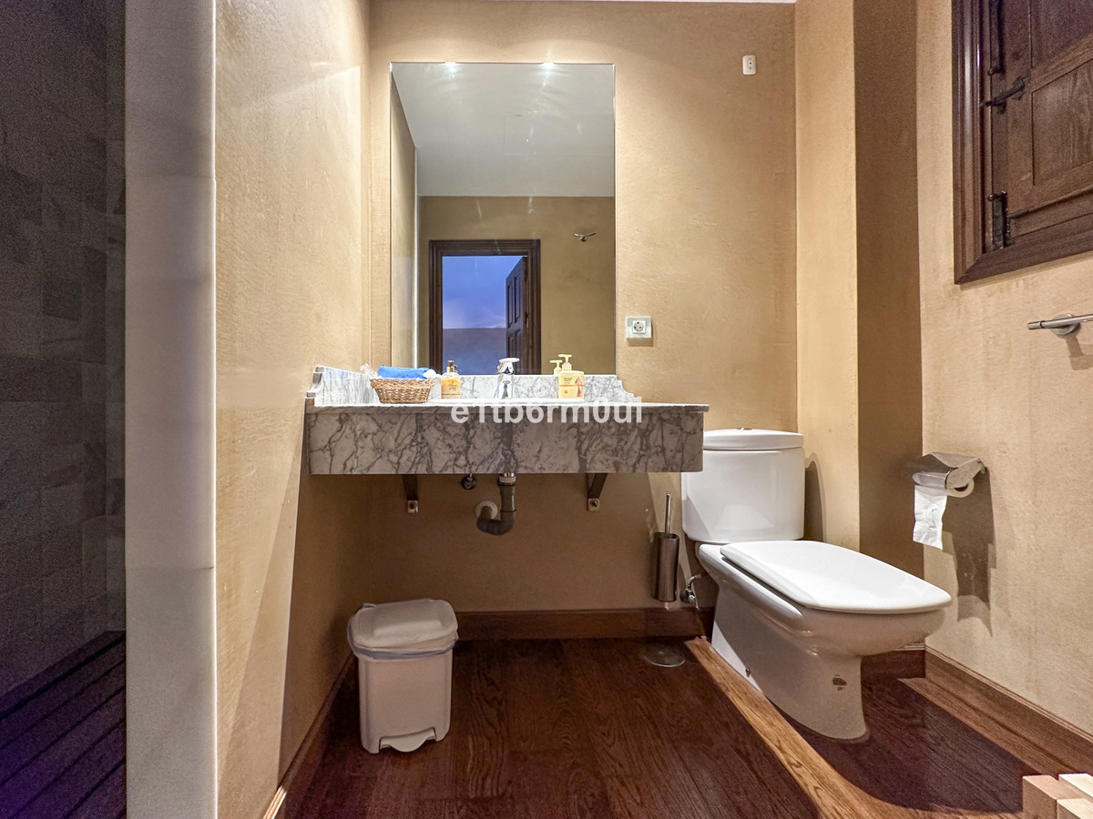 The main residence features on the ground floor an open plan layout with double height ceilings, a cosy fireplace and fully fitted kitchen with modern appliances and dining room area and a guest bathroom. On the first floor, four ensuite bedrooms all with outstanding views. Outside you have a lovely covered terrace, a large pool, and an immaculate garden framed with mature trees. Beyond the garden lies a separate studio built into the mountainside showcasing natural rock walls and adjacent a BBQ pit. Add to this the extensive plot, a chicken coop, stables, fruit trees galore and a perfect allotment area with scope to grow your vegetables. All the space needed to live an authentic country life but only a five-minute drive to amenities.
