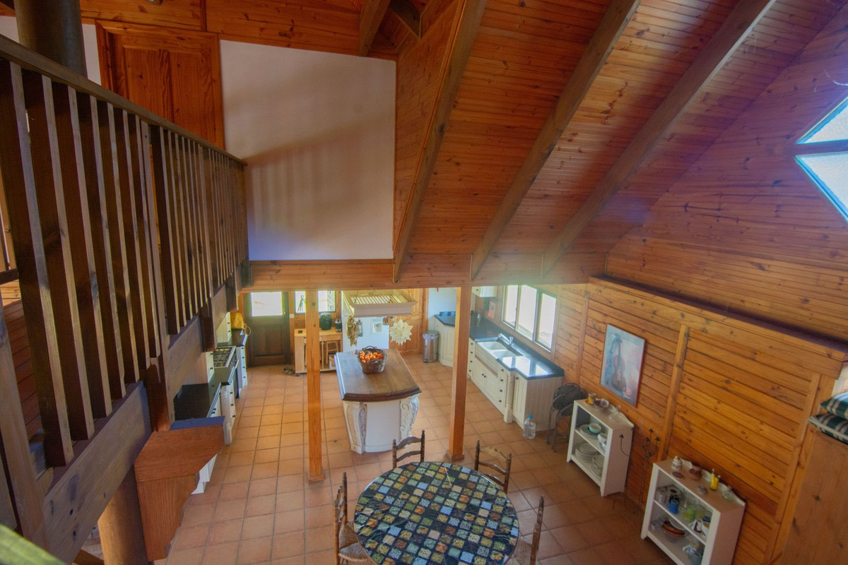 This charming finca, located in Mijas Costa, offers a solid wooden house with stunning open views of the surrounding mountains. Nestled in a protected natural area between La Cala Golf and La Mairena, the property is fully fenced and includes facilities for up to 4 horses, with boxes, a riding arena, and a tack and hayloft. The main house features 3 spacious bedrooms, each with an en-suite bathroom, and an open-plan kitchen and living area. Additional amenities include air conditioning, a fireplace, solar panels, water tanks, and a small cabin. The plot spans 6,200 m², offering both privacy and natural beauty.