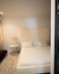 To the left of the elevator, you enter the second bedroom (BR2), designed in a unique layout featuring an elegant king-size bed, a separate shower and toilet, and an adjacent sink area, all adorned with beautiful silk curtains.