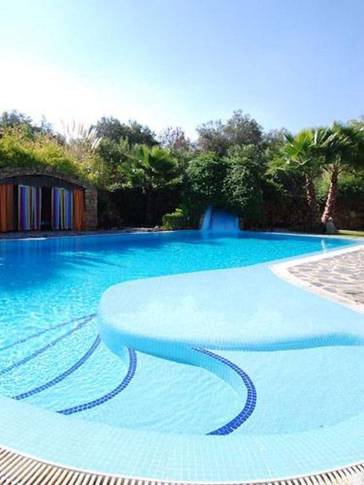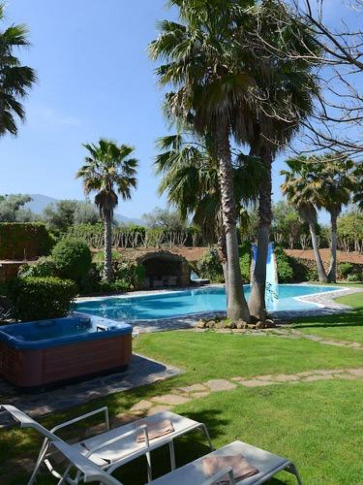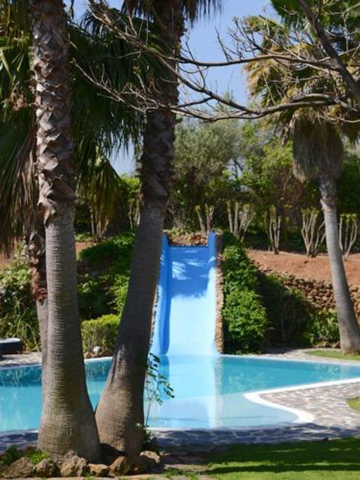 On the same level as the lounge is the large master air-conditioned bedroom which has views across the olive groves. This bedroom also has direct access to the terraces & pool areas. Next to the master bedroom we have a lovely a twin bedroom. Downstairs we have 6 bedrooms all benefit from air-conditioning (3 x twins, 2 of which have an en suite bath and separate walk-in shower room and 3 x doubles with en suite walk-in shower).What makes this property extra special is the outside area. the pool which is directly in front of the veranda is incredible and has its own water-slide built into the tropical garden. The house is surrounded by a large covered terrace which in the summer acts as an alfresco living room plus a modern BBQ also situated close to the pool. Finally we have to mention the The Moroccan Suite: This lovely Moroccan just a few meters from the main house and overlooks the pool & gardens. This air-conditioned room has a double bed with a en suite walk-in shower room. Also plenty of space for parking and majestic driveway to the entrance of the property. A unique property not to be missed.
