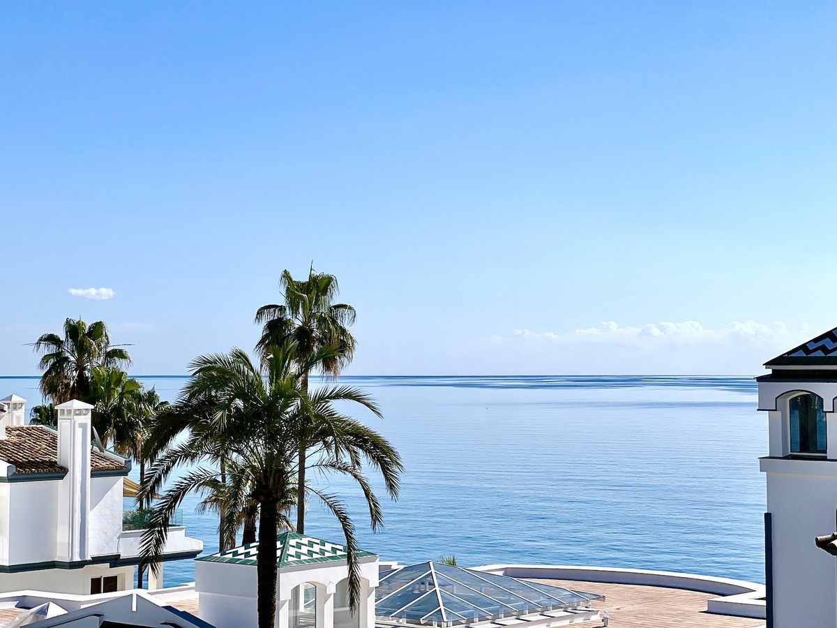 Located in the prestigious Dominion Beach area of Estepona East, this luxurious duplex penthouse offers a combination of elegant living and unbeatable convenience. Situated along the renowned New Golden Mile, the property enjoys a prime location, with direct access to the beach through beautifully landscaped communal gardens. Estepona Centre is just a short drive away, and the property benefits from excellent road connections, including the A-7 coast road, ensuring easy access to Marbella, Puerto Banús, and beyond. The area is well-served by international schools, making it a perfect location for families, while nearby golf courses, sports facilities, and supermarkets cater to various needs.