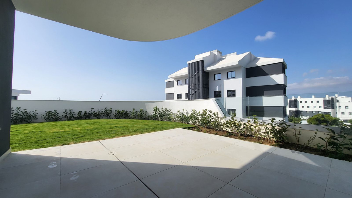 The living space boasts floor-to-ceiling sliding doors that open to a vast wrap around terrace of 35m2 offering urban, pool and partial sea views. Additionally, there is 68m2 of private garden and an outdoor shower. Spacious master bedroom with an en-suite bathroom and terrace of 18m2, perfect for enjoying the morning sunshine.
