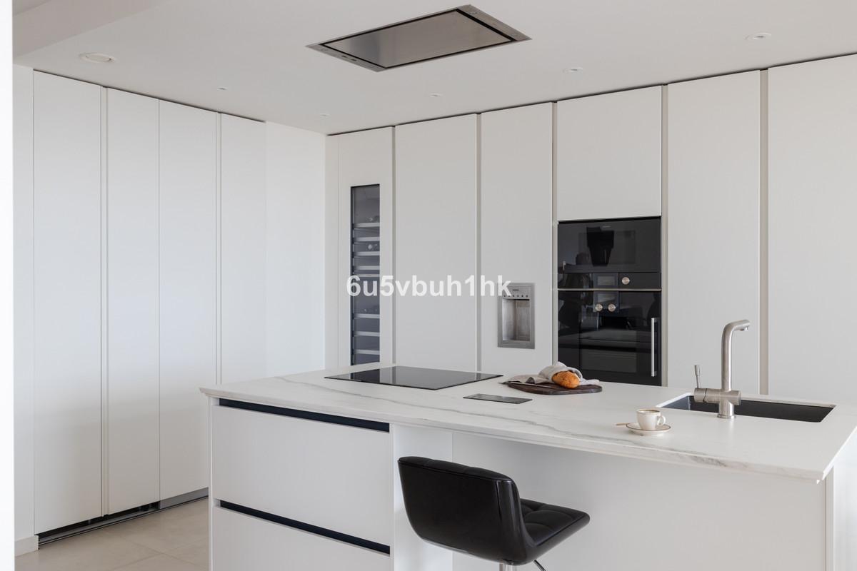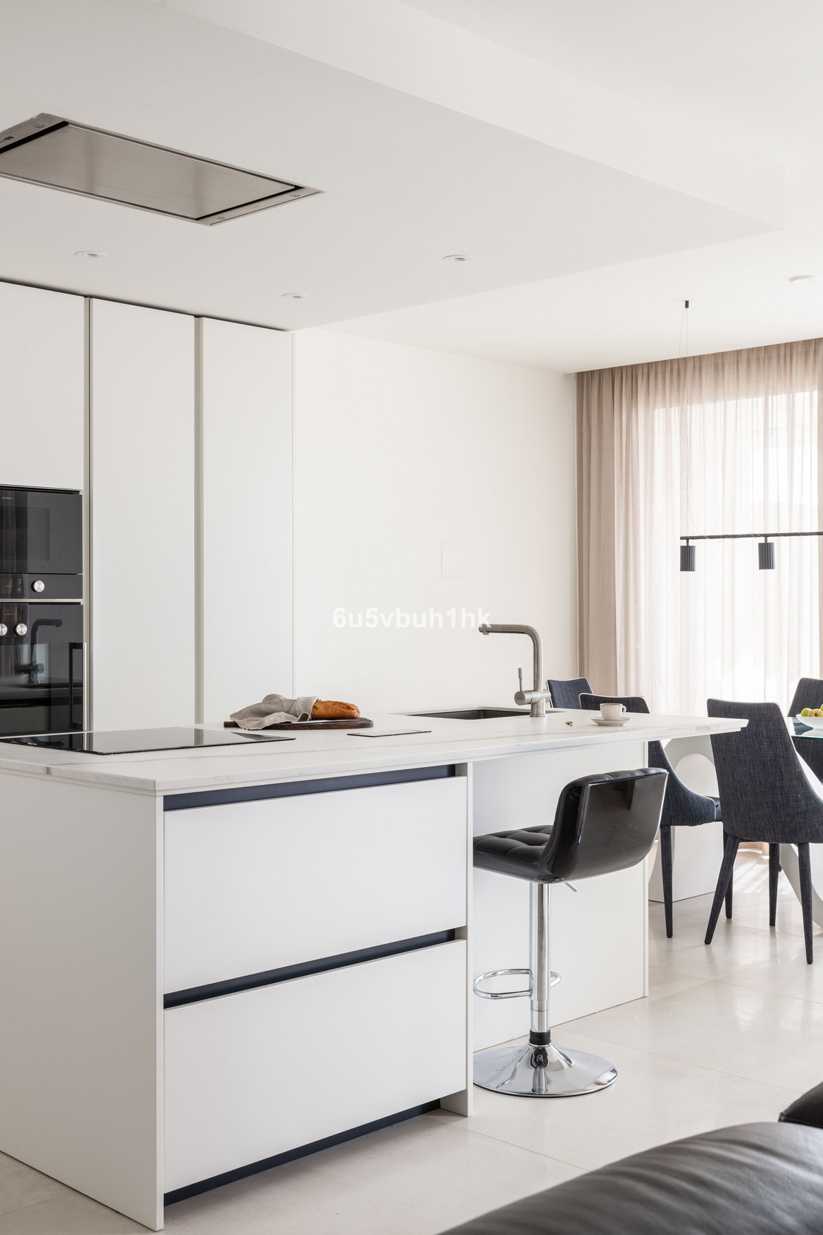This bright apartment includes two spacious bedrooms with underfloor heating designed for relaxation. Both bedrooms boasts luxurious en-suite bathrooms offering a private retreat. Enjoy an expansive open-plan living and dining area that seamlessly connects to a huge terrace ideal for entertaining or enjoying fabulous views. The south-west facing terrace features a Drop jacuzzi and panoramic sea views stretching all the way to Gibraltar. The modern open-plan kitchen complete with an island is perfect for culinary creations and social gatherings.