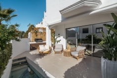 La Maison Saint Germain is an exceptional two-storey townhouse for sale in the prestigious Golden Mile, a highly sought-after area known for its refined residences, excellent amenities, and seamless connectivity to Marbella's finest offerings. This newly renovated home perfectly balances Scandinavian-inspired elegance with modern functionality, presenting an ideal living space for those seeking comfort and style in a prime location.