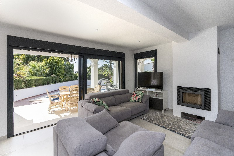 This south facing villa has sea views from upstairs and is composed of 3 bedrooms en suite and is situated on a flat plot with a lovely pool and set in matura gardens with sub tropical plans and trees. The open plan kitchen is beautifully done and gives access to the spacious living room. The villa offers a carport with space for 2 cars inside the grounds. The house has been completely renovated to a high standard recently.