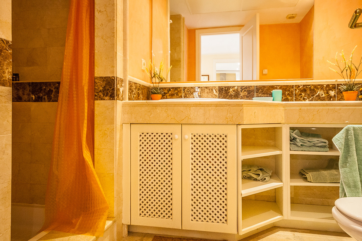 Ample ground floor apartment in the beautiful urbanisation of Elviria Hills offering two bedrooms both leading out to a large, south facing terrace, a fully fitted kitchen and a living dining area and two bathrooms of which the master bathroom is en-suite. Constructed in the year 2000, the community has wonderfully matured over the years and offers 9 outdoor swimming pools, 2 clay tennis courts, a clubhouse overlooking an artificial lake with a gym and a Michelin Star restaurant on site.