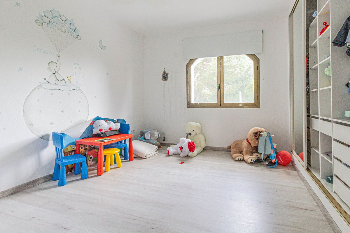 As you make your way upstairs, you will discover a bright master bedroom that will become your personal retreat. With a large dressing room and en-suite bathroom, this space is ideal for relaxing after a long day. The spacious terrace off the master bedroom offers spectacular views of Sotogrande, a privileged corner where you can enjoy moments of peace and beauty. On this floor, you will also find another terrace, two additional bedrooms and a complete bathroom, designed to offer maximum comfort.