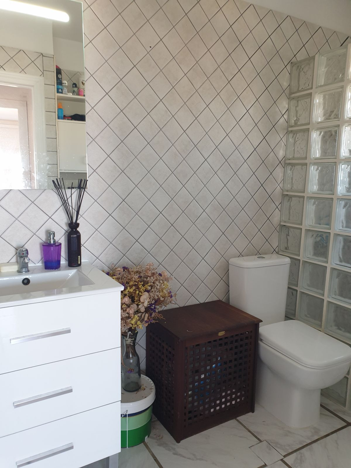 Located on the first level (accessible by stairs), the apartment features a welcoming entrance leading to an open-plan kitchen and dining area that seamlessly flows into a spacious and inviting lounge. It comprises three generously sized double bedrooms and two bathrooms, plus a versatile storage room easily convertible into a third bedroom.