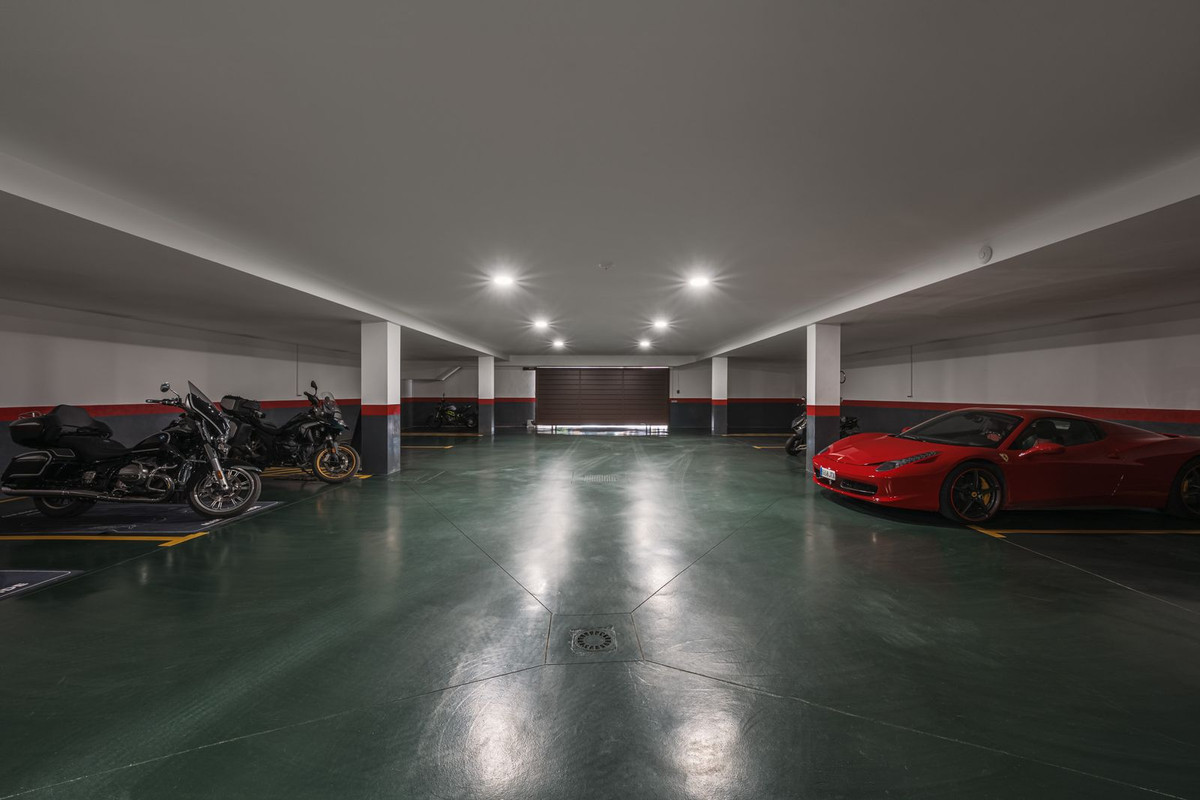 Downstairs is also the location of the spacious indoor gym and the large garage for 12 cars, only for you then to be able to take a walk in the Villa's award-winning gardens.