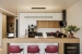 In addition, the villa will be partially furnished with custom-made furniture, which is included in the quoted price. We will be pleased to provide you with a list and technical specifications upon request. Essentially, you will receive all items shown in the visuals, with the exception of the sofa, armchair, chairs, bar stools, mattresses, TV, outdoor furniture, barbecue, and decorations, which can be purchased according to personal preferences.