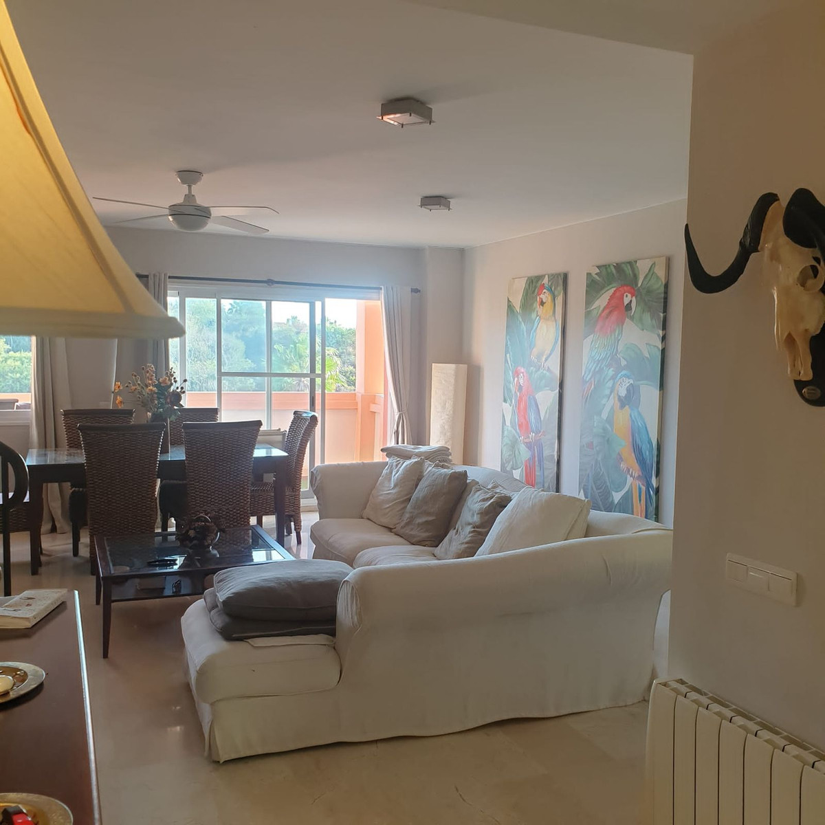 Duplex penthouse located in a rapidly expanding area between Fuengirola and Cala de Mijas (Chaparral-Calaburras golf course area), approximately 300 meters from Playamarina beach and El Charcón. It has 3 bedrooms, 2 bathrooms (one en suite with a hydromassage bathtub and separate shower), two living rooms, one on each floor, a fireplace, and an open-plan kitchen with state-of-the-art furniture. Marble floors and bathroom tiling. Recently renovated hot and cold air conditioning. Two large terraces, one per floor, equipped with sun awnings. The communal areas include gardens and a swimming pool for adults and children. The price includes a garage space and a large storage room