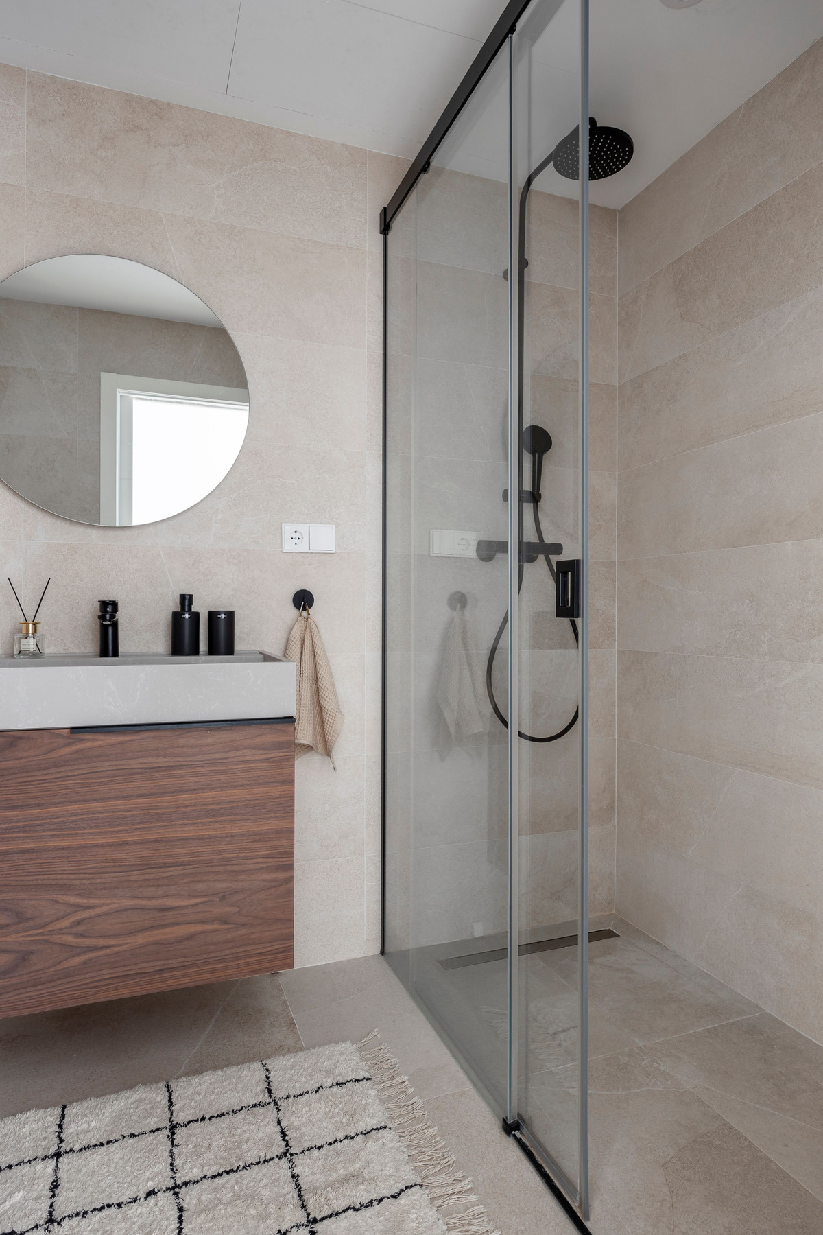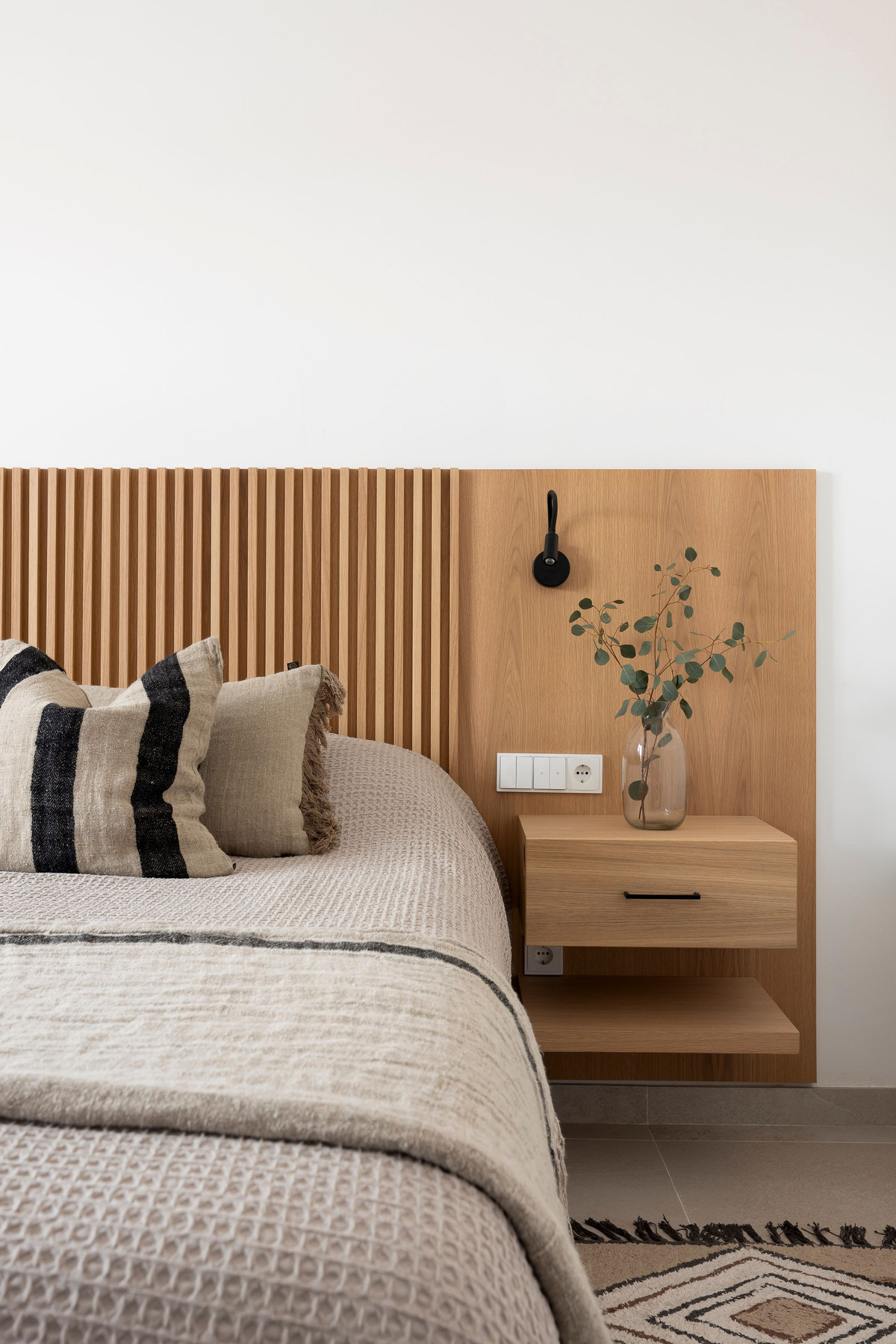 The boho-inspired interior complements the clear and practical floor plan, while water-circulated underfloor heating and cooling ensure comfort year-round.