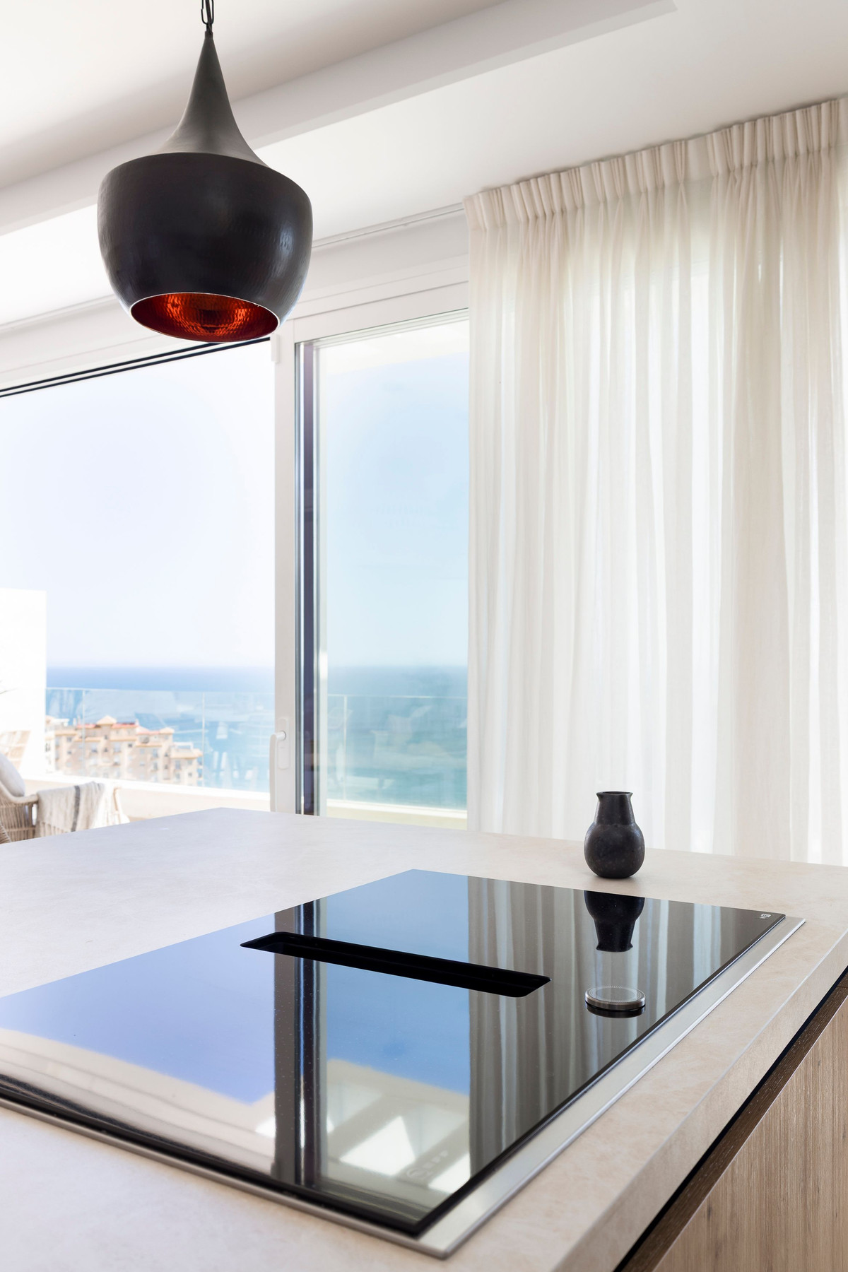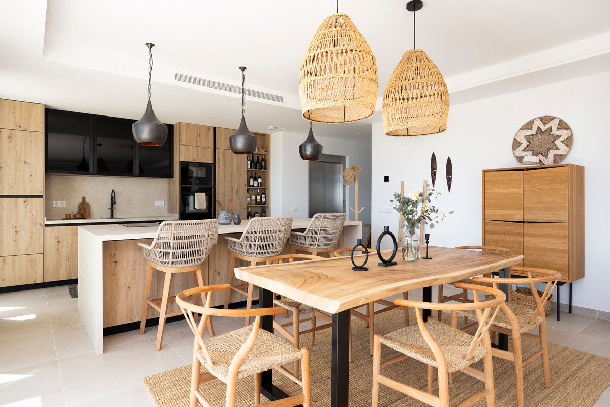 As you enter, you're welcomed by an open view that flows through the kitchen, dining, and living areas – extending seamlessly to the amazing sea view terrace, enhanced with high-quality 9-meter electric sunshades with wind sensors.